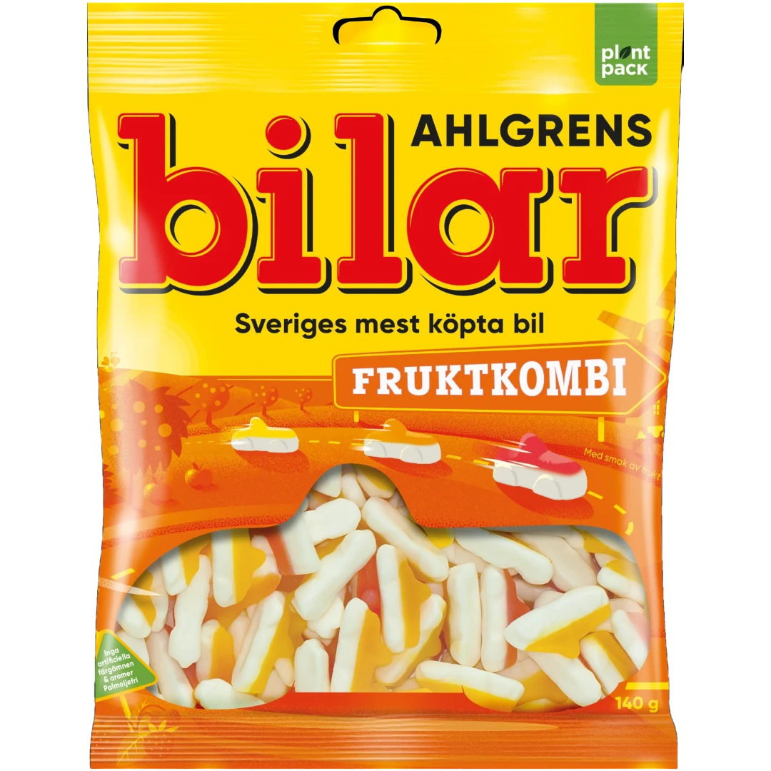 Ahlgren’s cars Fruktkombi has the same bottom as Ahlgren’s Bilar Original but with a lovely colourful gummy roof that puts an extra tasty spin on Sweden’s most purchased car! What would you like the colour and flavour of your car to be? Here at this garage you can enjoy three different colours and flavours; red raspberry, yellow lemon and orange tuttifrutti!