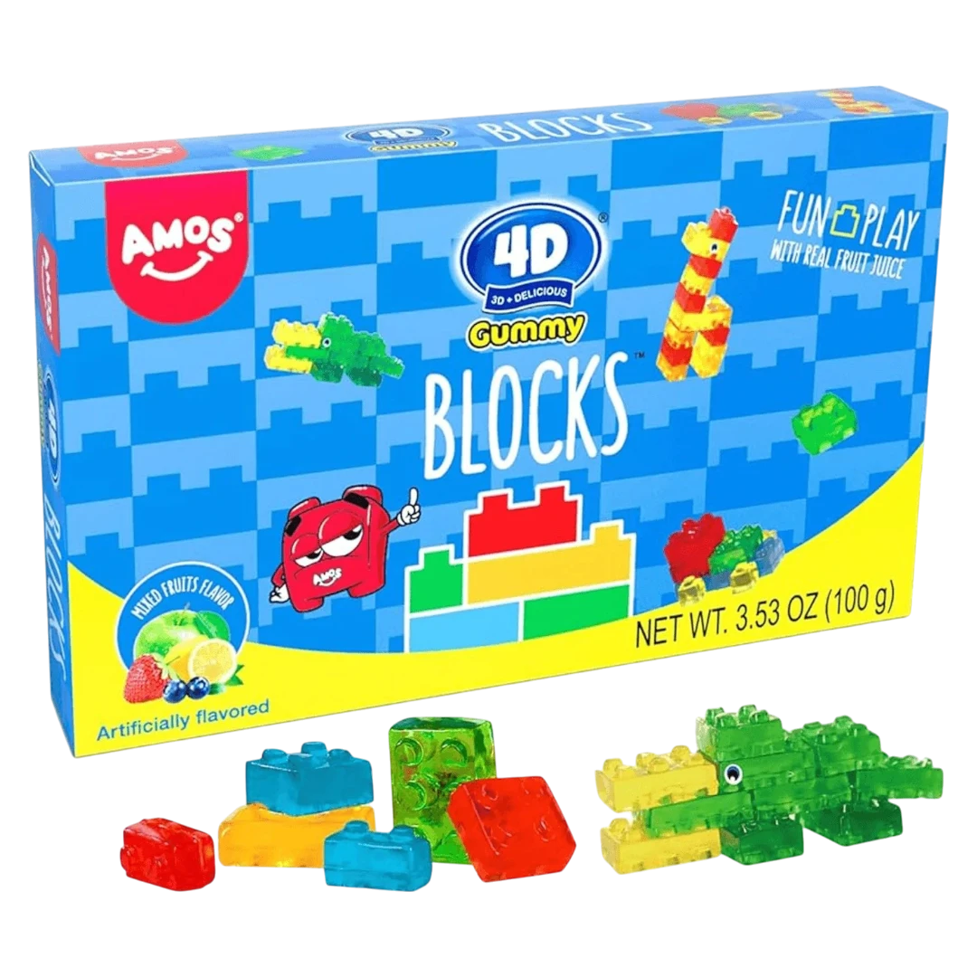 Enjoy endless fun with this 100g box of 4-D Gummy Blocks! These fruity, interlocking gummies combine playtime and snack time in one delightful treat. Perfect for kids and kids-at-heart, these edible blocks are great for building, stacking, and eating. Ideal for Easter baskets, party favours, stocking stuffers, or a fun day out with the family!