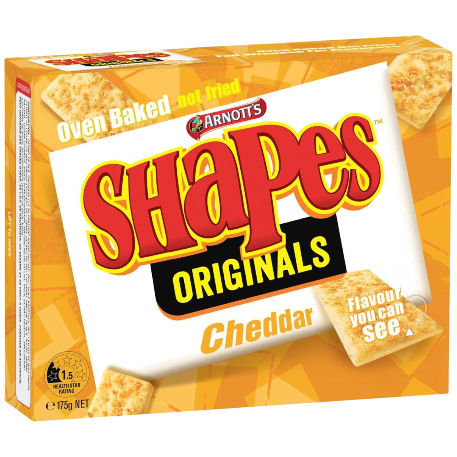 Experience the irresistible and addictive flavour of Arnott’s Shapes Originals Cheddar! With a delectable cheese taste and a satisfying crunch, these crackers will fulfil all of your snacking desires. Whether you’re sharing or snacking solo, these Shapes are guaranteed to leave you wanting another bite!