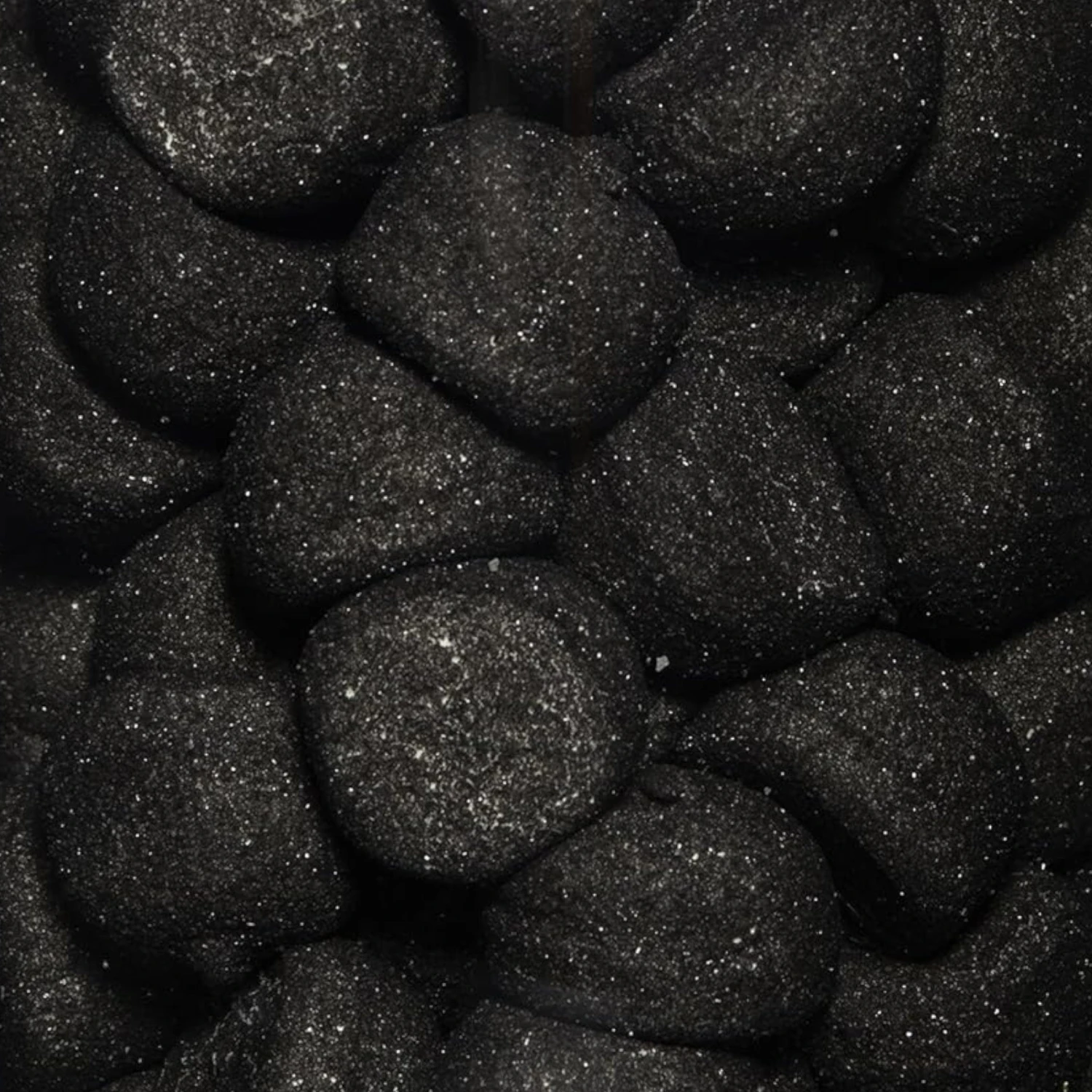 Light, fluffy marshmallow with a vanilla-flavoured black sugar coating!