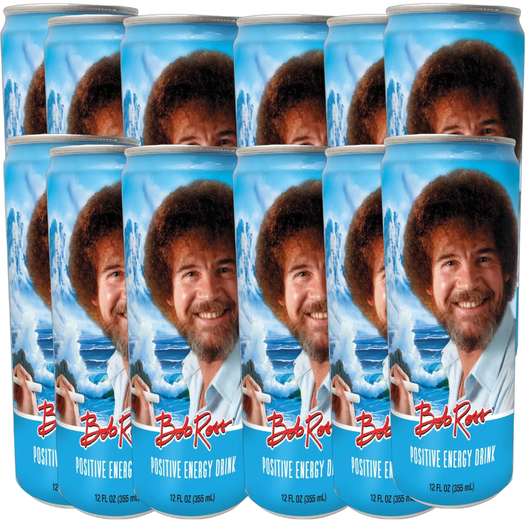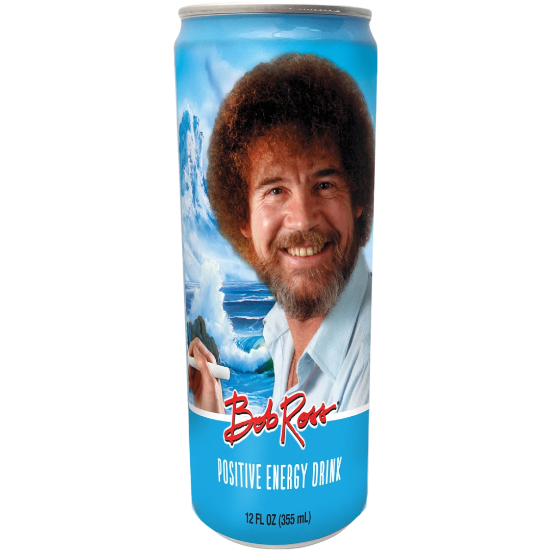 Bob Ross knows how put a positive spin on your day! Filled with 12 ounces of sweet liquid energy drink, this can is sure to give you a positive pick-me-up!