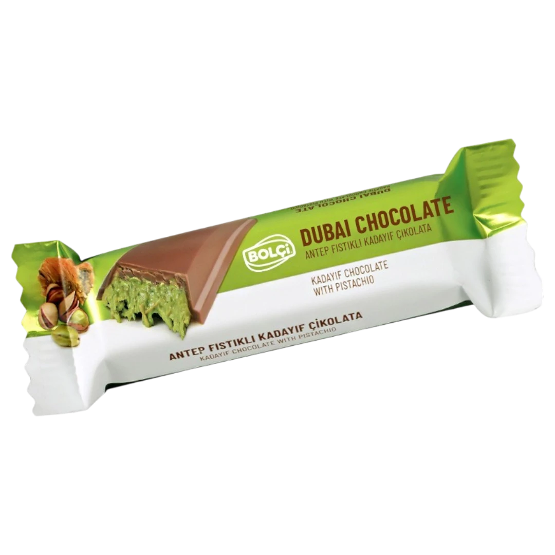 sugar, pistachio kernels, whole milk powder, vegetable fats, cocoa butter, cocoa mass, skimmed milk powder, roasted dough threads, wheat flour, water, salt, whey product, emulsifier: (E322), polyglycerin polyricinoleate, flavouring (vanilla)
