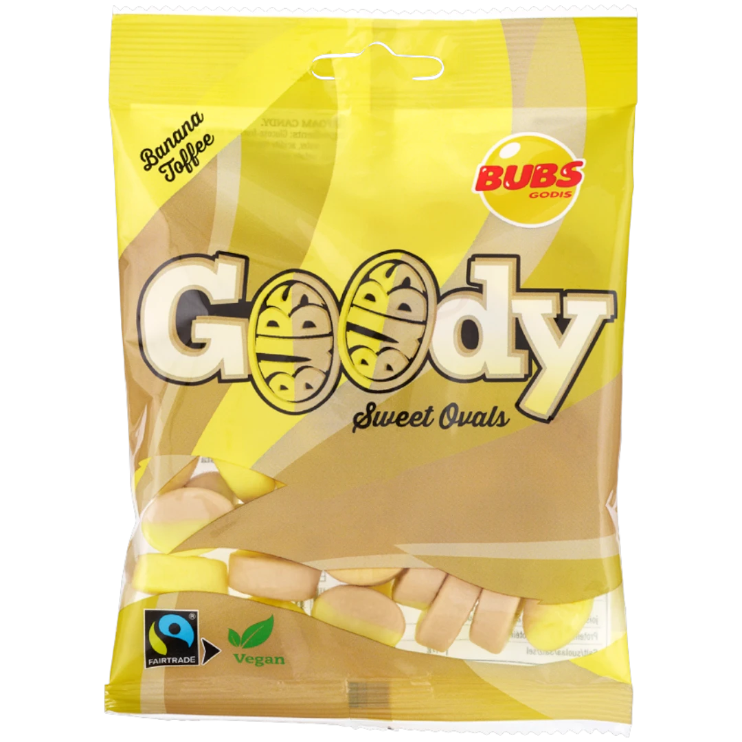 These are completely bananas. Plus wonderful caramel. You recognize the taste from one of our most popular candy pieces in the pick and mix, Banana Bubs. But now in a smaller format as a bag. Tasty!