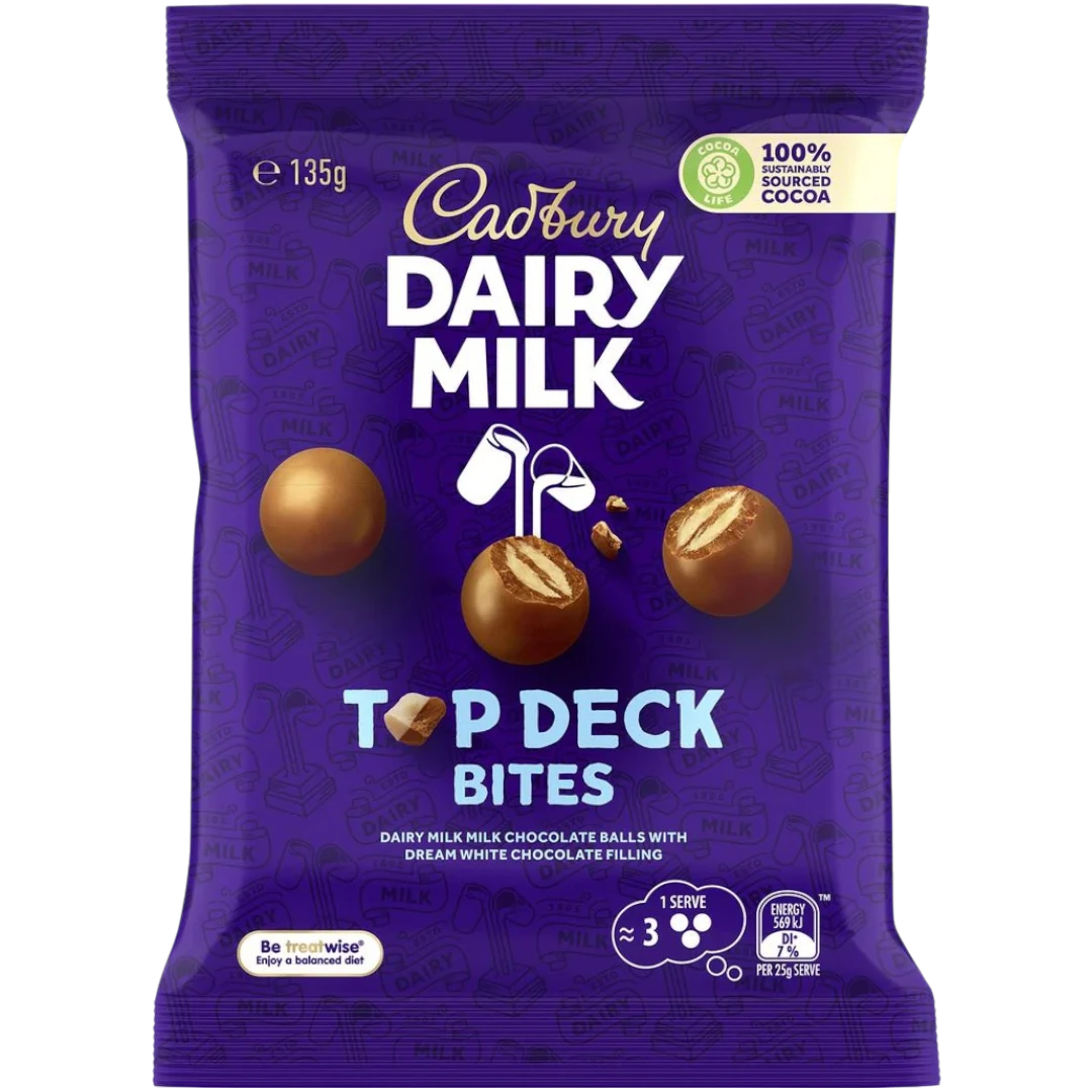 Perfect for sharing or treating yourself, these Top Deck Bites are a fun, convenient way to enjoy the iconic combination of milk and white chocolate anytime, anywhere. Unwrap a little moment of chocolate bliss!