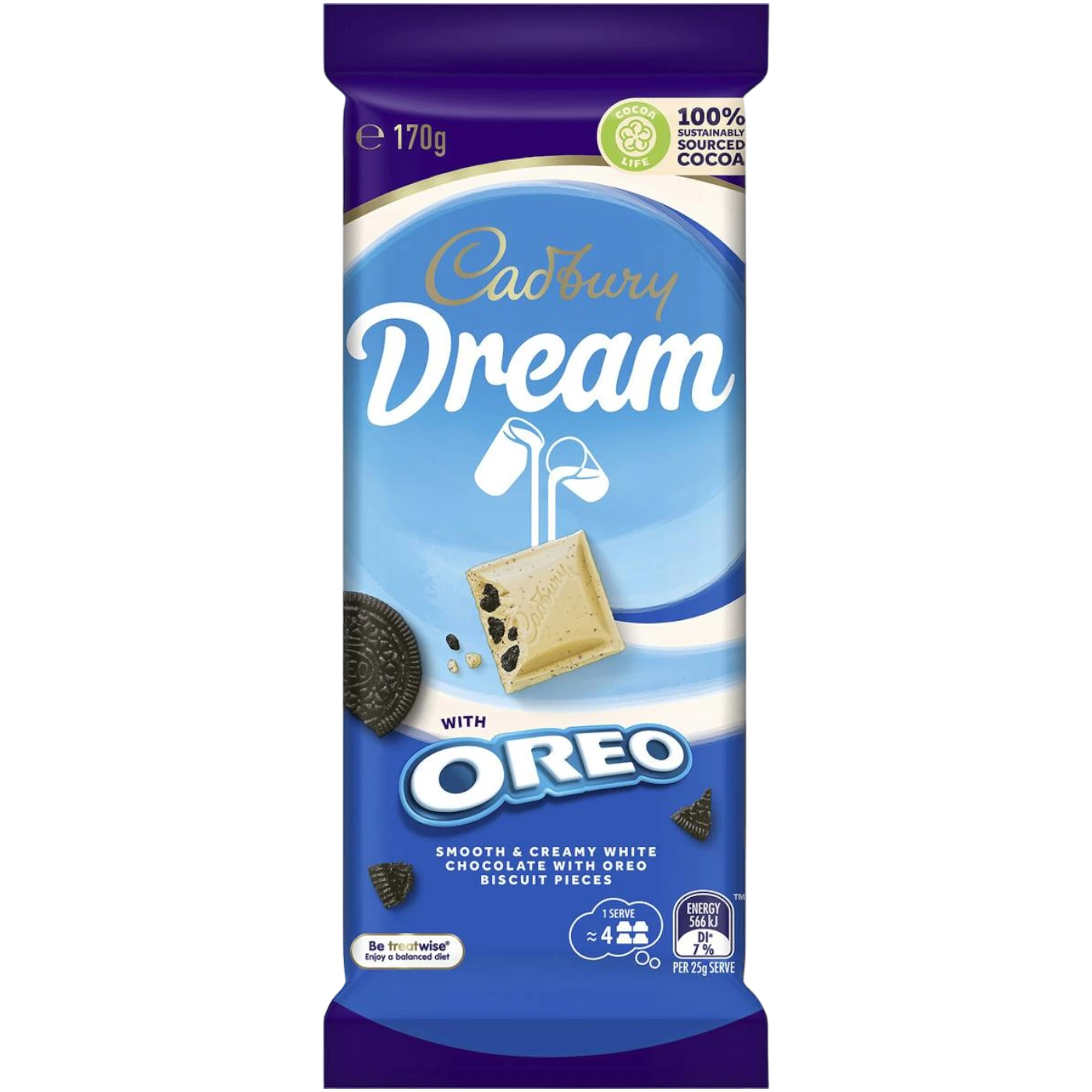 Cadbury Dream with Oreo is the classic, nostalgic, smooth & creamy Dream white chocolate filled with Oreo biscuit pieces, brought to you from down under!