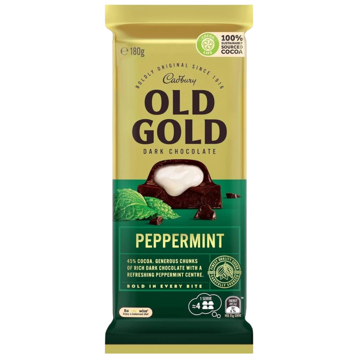Satisfy your cravings with Cadbury Old Gold Peppermint Chocolate Block. Boldly indulge in the rich dark chocolate with a cool peppermint centre that’s been delighting generations of chocolate lovers for years. Our sustainably sourced cocoa not only tastes good, but also helps cocoa farmers improve their lives and communities. Get ready for bold flavour in every bite!