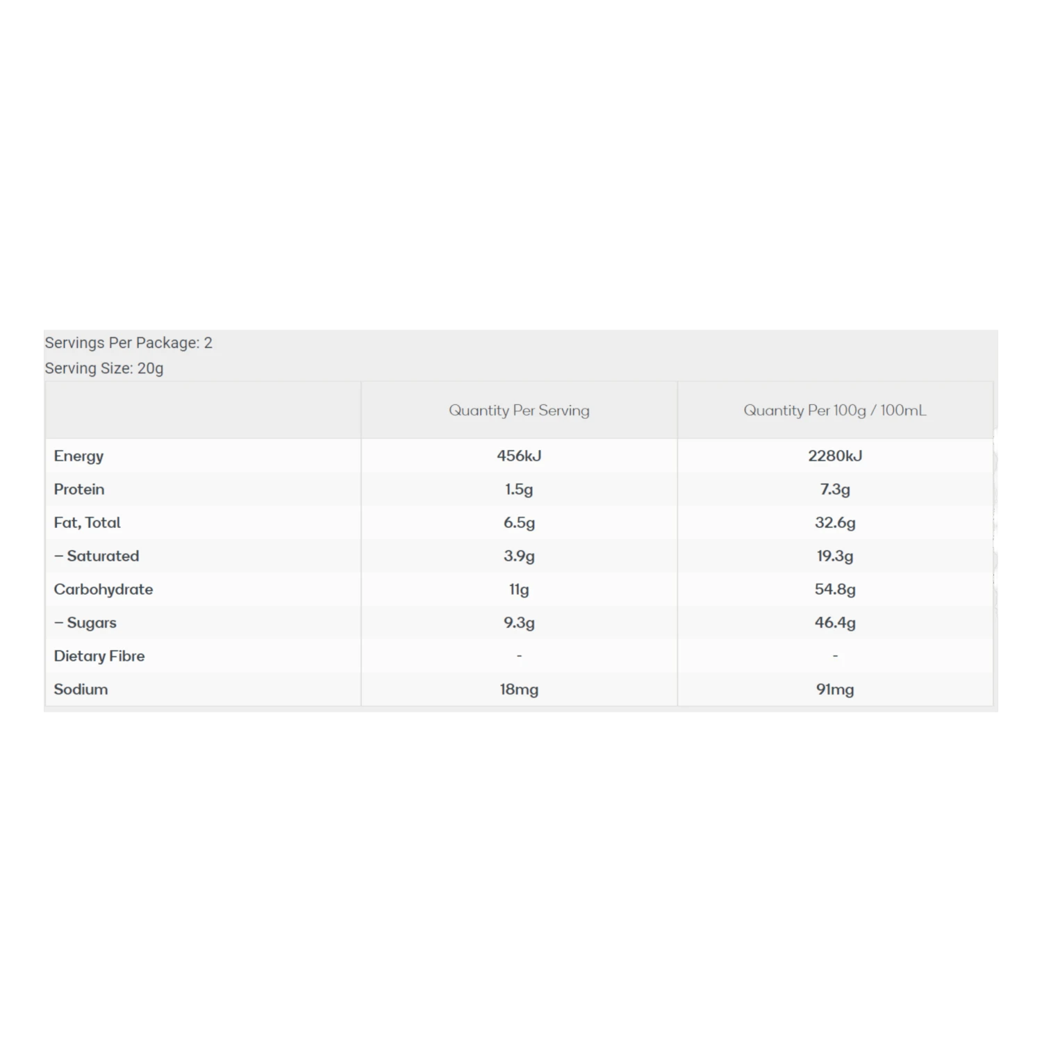 | Nutrition Information | per 100g |
