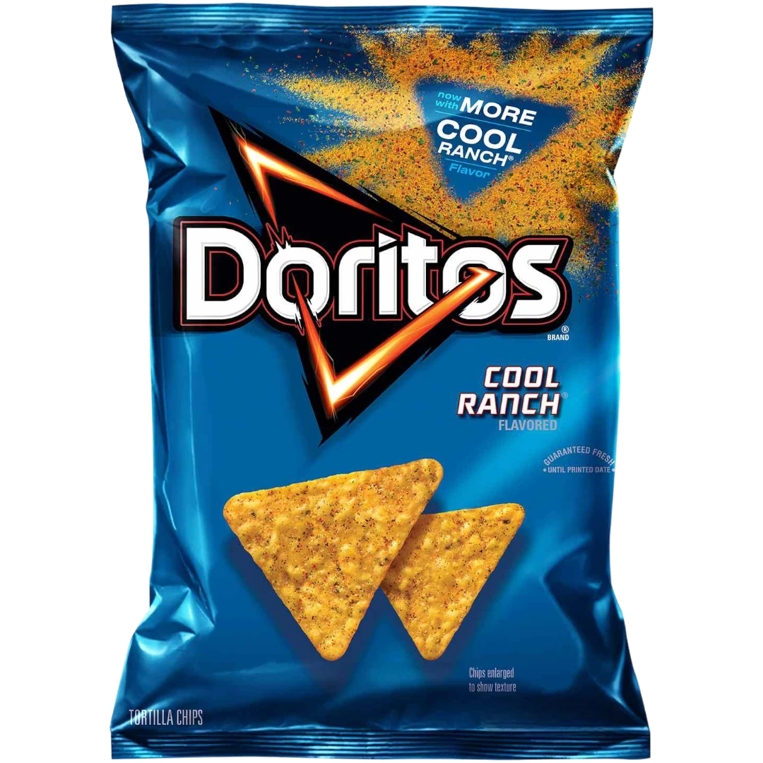 The DORITOS brand is all about boldness. If you’re up to the challenge, grab a bag of DORITOS tortilla chips and get ready to make some memories you won’t soon forget. It’s a bold experience in snacking and beyond. Savour the flavour of cool ranch dressing in this variety of DORITOS chip! This particular flavour works really well with dips, melted cheese, beef or sour cream! A must-have for a get-together or party or simply a night in or movie night!