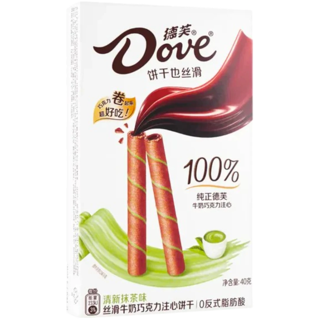 If you’re a Galaxy fan (or ‘Dove’, as it’s known outside of the UK), then these Dove wafer rolls from China will be a welcome sight! The classic Galaxy/Dove bar has undergone a transformation, and can now be enjoyed as a crispy matcha-infused wafer roll with a Dove chocolate cream filling!