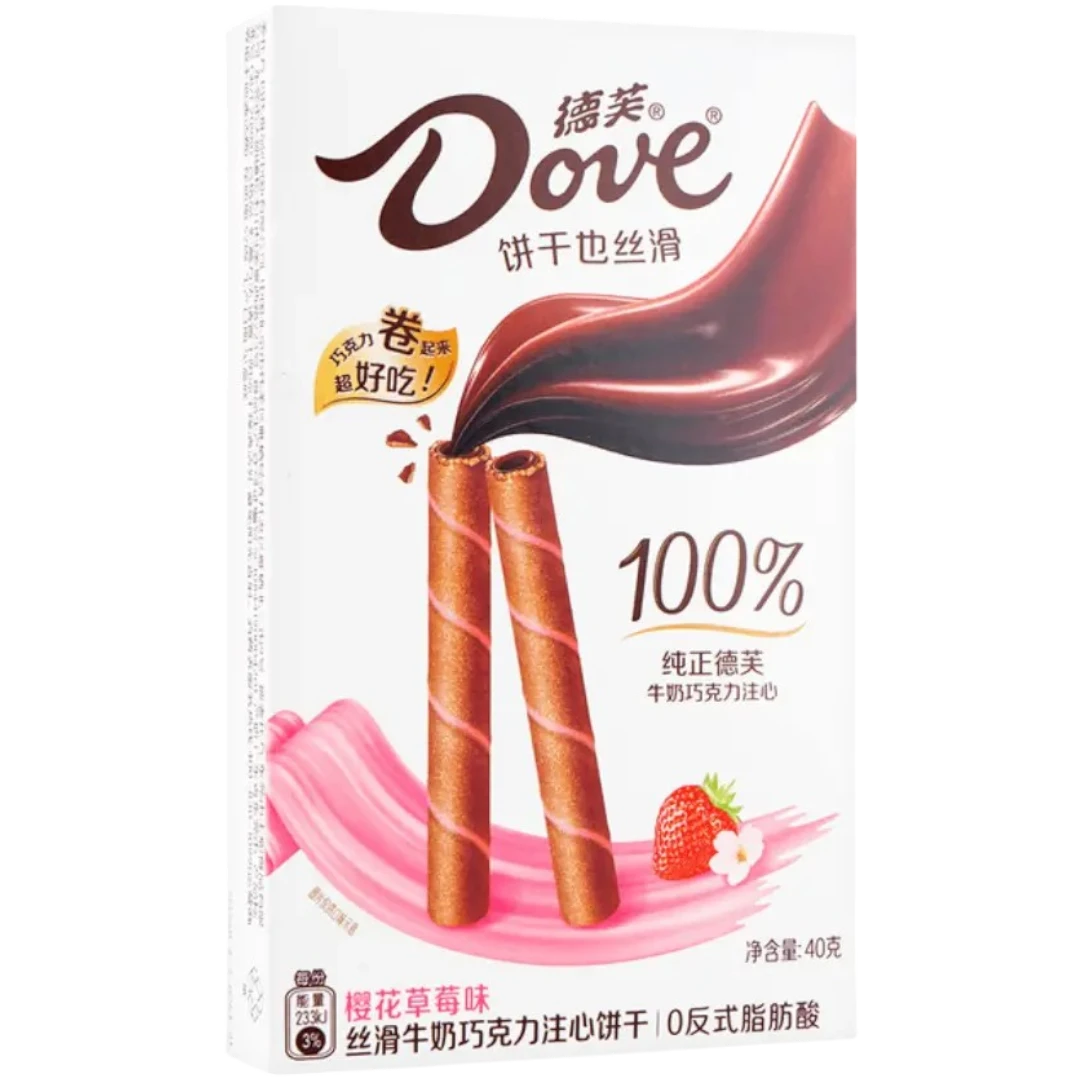 If you’re a Galaxy fan (or ‘Dove’, as it’s known outside of the UK), then these Dove wafer rolls from China will be a welcome sight! The classic Galaxy/Dove bar has undergone a transformation, and can now be enjoyed as a crispy strawberry & sakura (cherry blossom) infused wafer roll with a Dove chocolate cream filling!