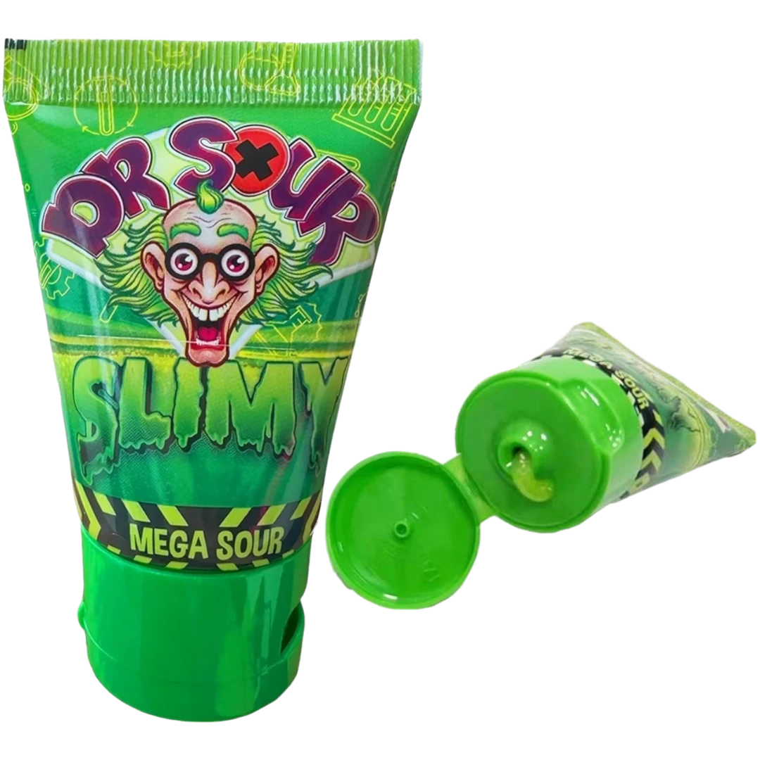 Get ready for some SERIOUSLY SOUR, squeezy, tasty, slimy fun with this new Dr Sour Slimy Mega Sour squeeze candy!