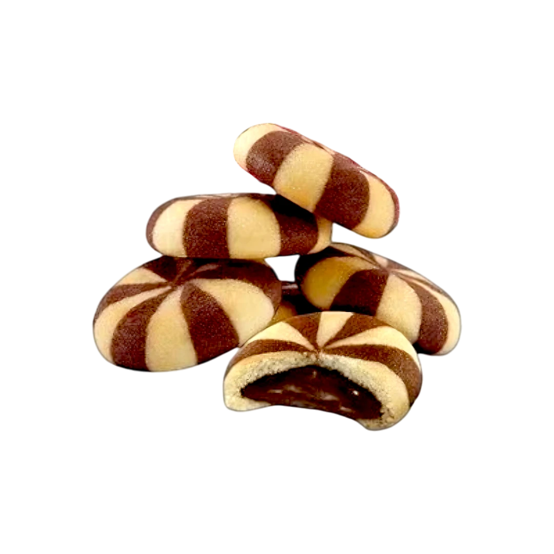 Wheat Flour (Contains Gluten), Vegetable Oil (Palm, Sunflower, Cotton, Canola), Sugar, Corn Starch, Cocoa Powder Reduced Fat 1%, Salt, Raising Agents (Sodium Acid Pyrophosphate, Sodium Hydrogen Carbonate), Flavours, Cream 30% [Sugar, Vegetable Oil (Palm, Sunflower, Cotton, Canola), Sesame Butter, Reduced Fat Cocoa Powder 6%, Hazelnut Puree, Lactose (Milk Product), Carob Flour, Emulsifier (Sunflower Lecithin), Flavours, Salt]