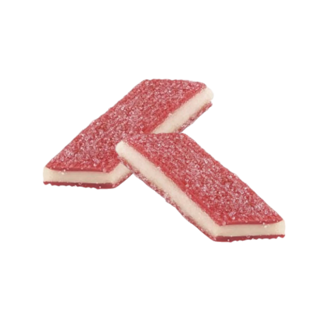 A strawberry and cream flavour gummy and fondant sandwich – delicious!
