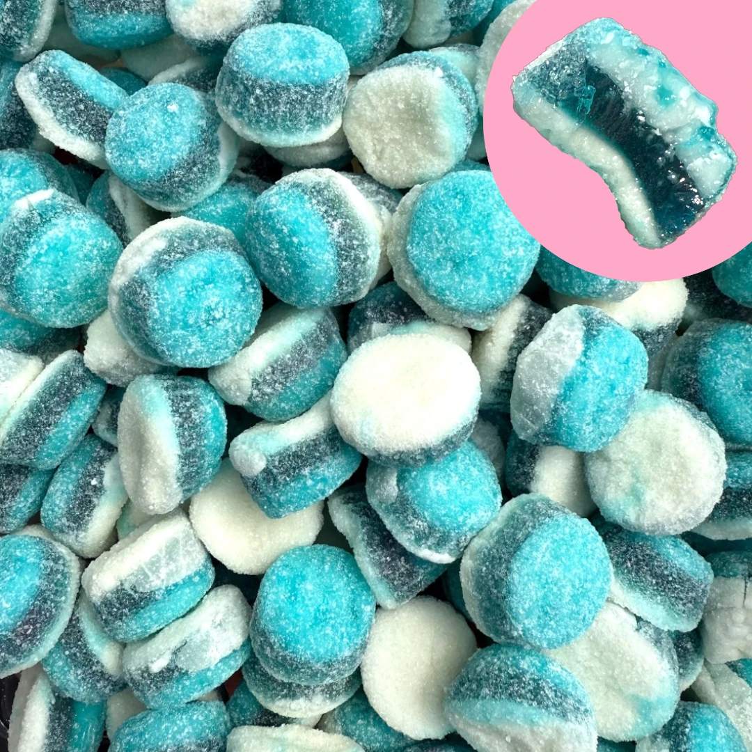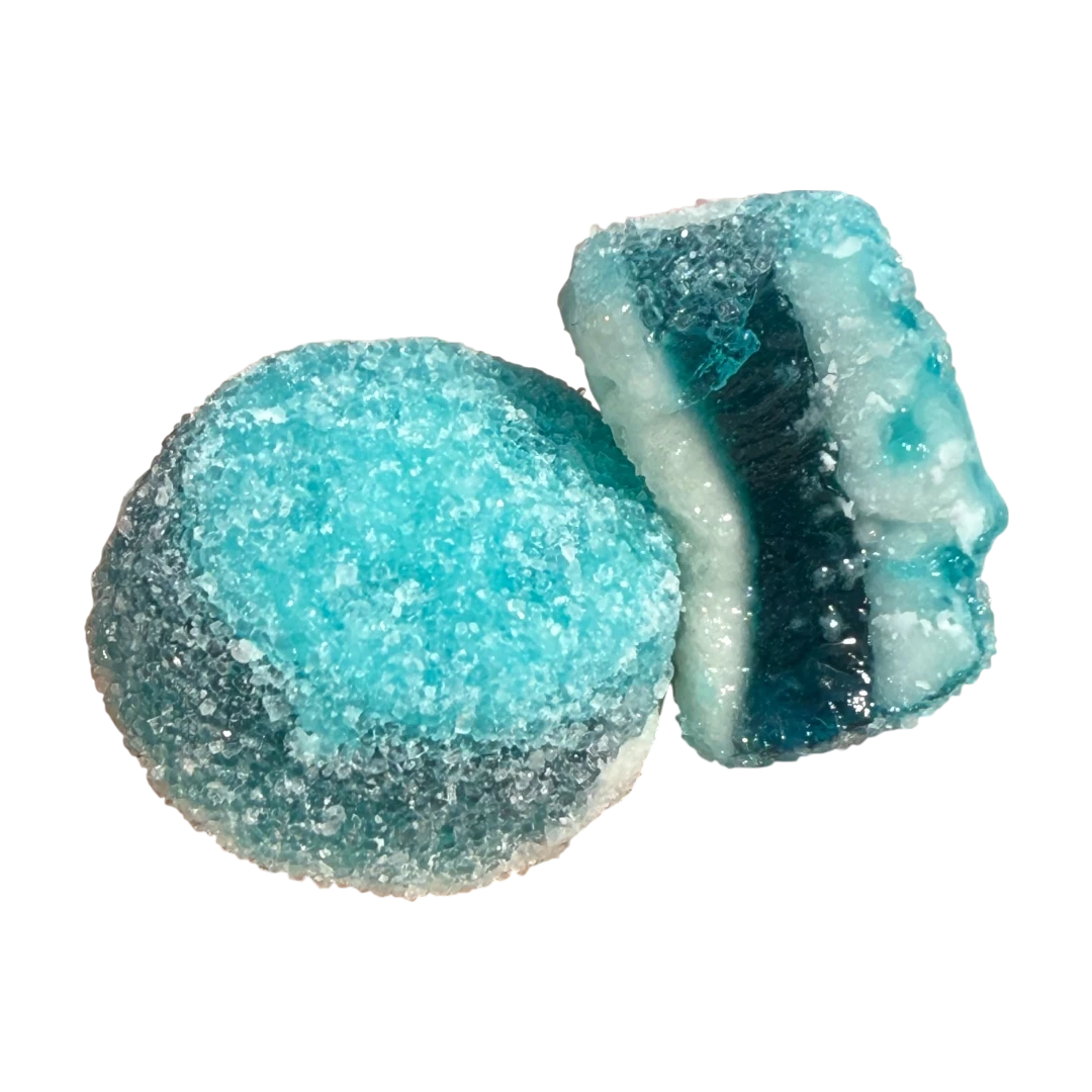 You won’t have ever tried a sweet like this before! Scrumptious blue raspberry flavoured gummies with a foamy bottom, finished off with an incredibly unique fondant top – literally the icing on the cake (well, tart)! You might even get a bit of extra fondant oozing out, but hey, who’s complaining about that!?