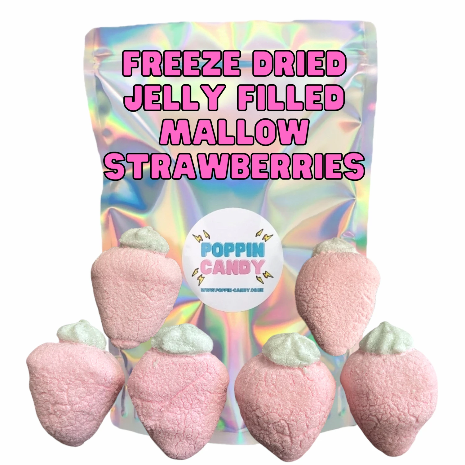 Each bag contains 6 Freeze Dried Jelly Filled Strawberries