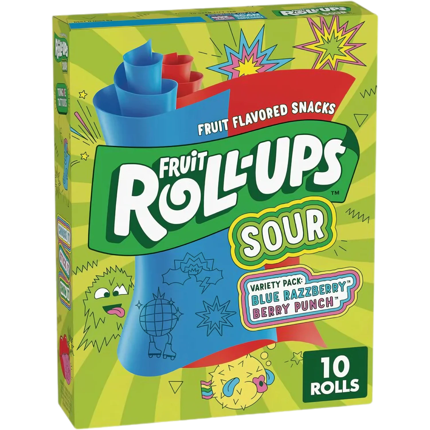 - SOUR FRUIT FLAVORED SNACK: Fruit Roll-Ups Variety Pack featuring two sensational sour flavors – Blue Razzberry and Berry Punch