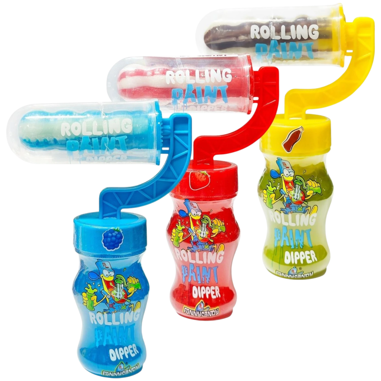 Prepare for a flavor explosion on your tongue! This roller candy comes with grooves in the handle for extra fun. Dip and roll through tasty cola, strawberry, and blueberry flavours that will have your taste buds doing a happy dance. Get ready for a lick-tastic adventure!