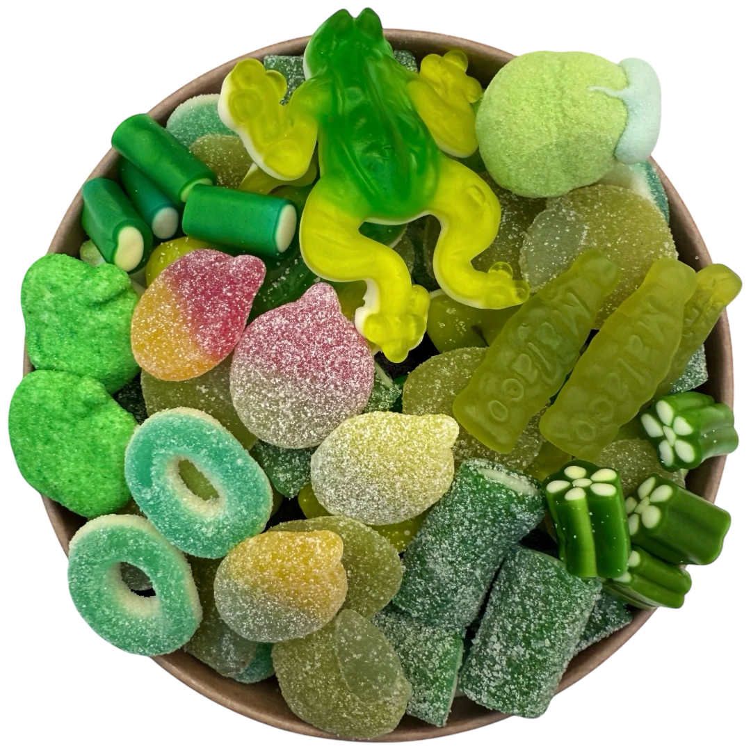 Get ready for your taste buds to be BLOWN! Our brand new Green Apple Mix sure does pack a punch with all that tangy, sweet and sour flavour of green apple that you just can’t resist! From Jelly filled Apple Mallows and Apple Revolvers, to Apple Rings – this mix is full of great texture and greeny goodness! You’ll struggle putting this bag down…