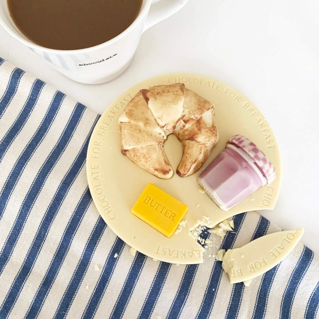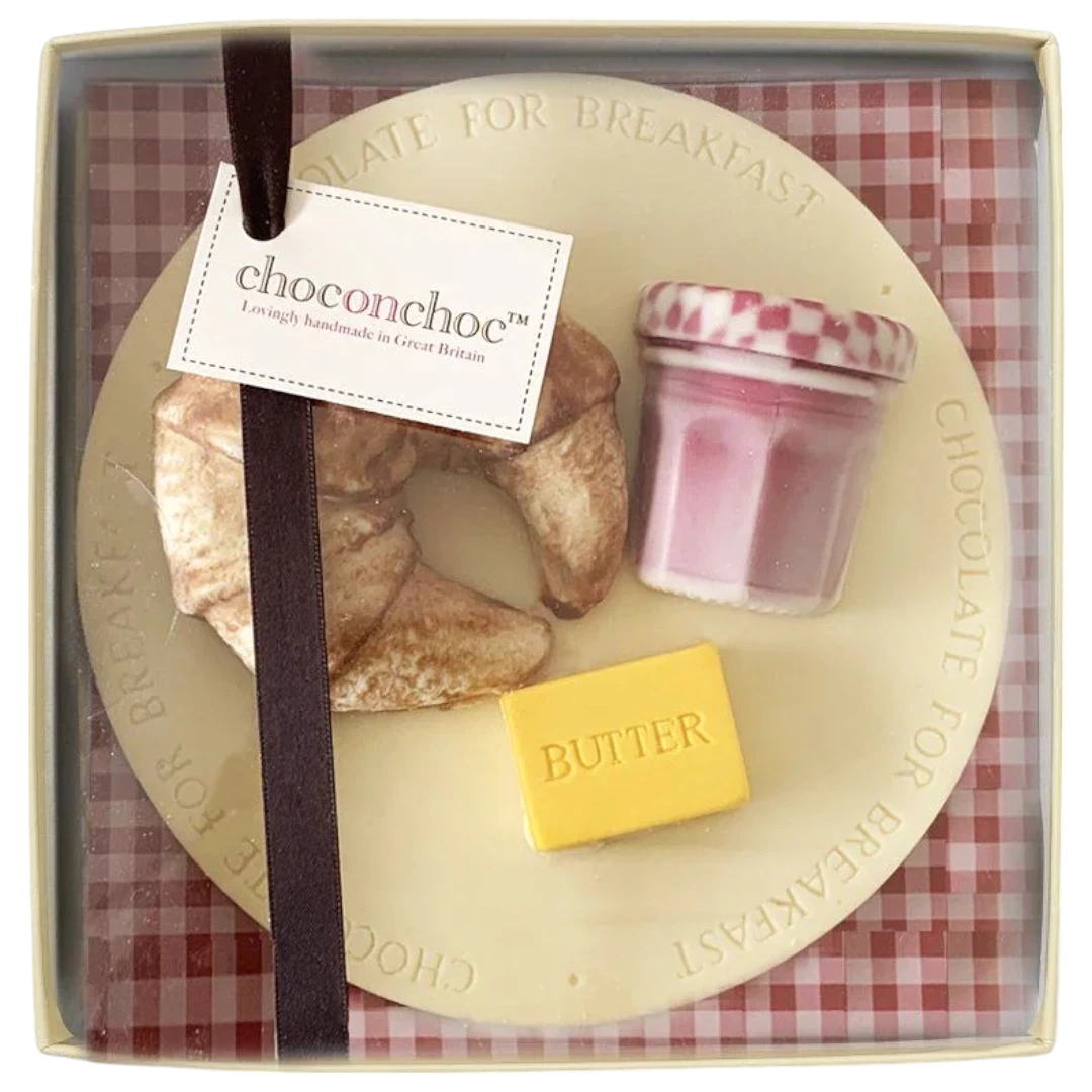 This chocolate take on the continental breakfast includes a chocolate croissant, chocolate jam pot, and a piece of creamy chocolate butter, all sat upon a chocolate plate, of course, there is no excuse for not having breakfast in bed with this delicious treat!