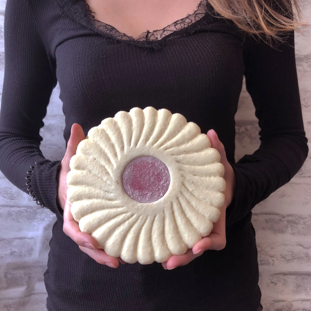 Why bother with normal sized biscuits when you can dig into this giant, solid chocolate jammie ring. Snack time will never be the same again.