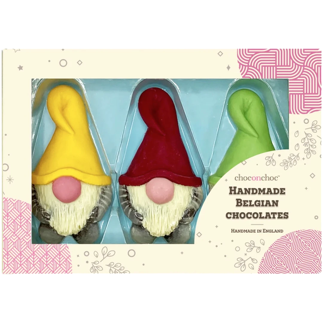 Meet the new gang of Gonks these three cuties will make anyone smile, handmade from milk and white Belgian chocolate they will brighten anyone’s day this spring. Each hat and nose is lovingly handpainted. These Gonks make our hearts sing.