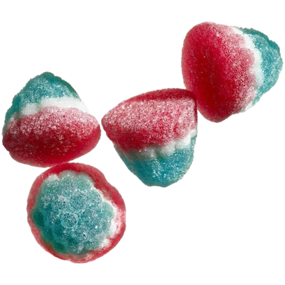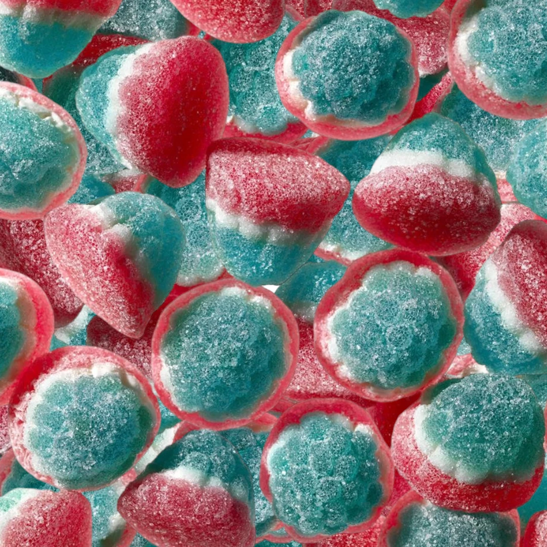 You’ve never seen blueberries like these! Big, thick, triple layered, completely handmade gummies – their red and blue gummy layers sandwich a fluffier, slightly cleamier, foamy gummy layer for a next level texture and flavour combination!