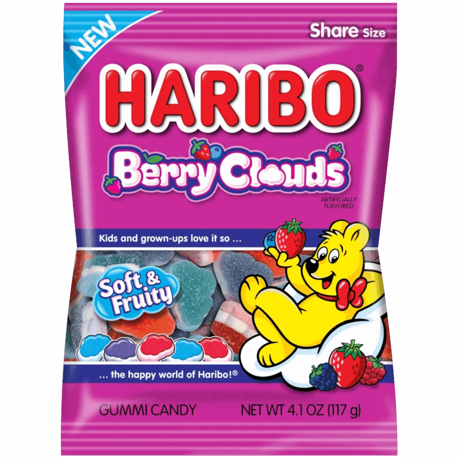 Get ready to float into cloud nine! Introducing NEW HARIBO Berry Clouds, featuring a triple-layer foam gummi with a soft, cloud-like texture. Every bag of Berry Clouds packs Blueberry, Wildberry, and Strawberry flavors into dreamy cloud shapes.