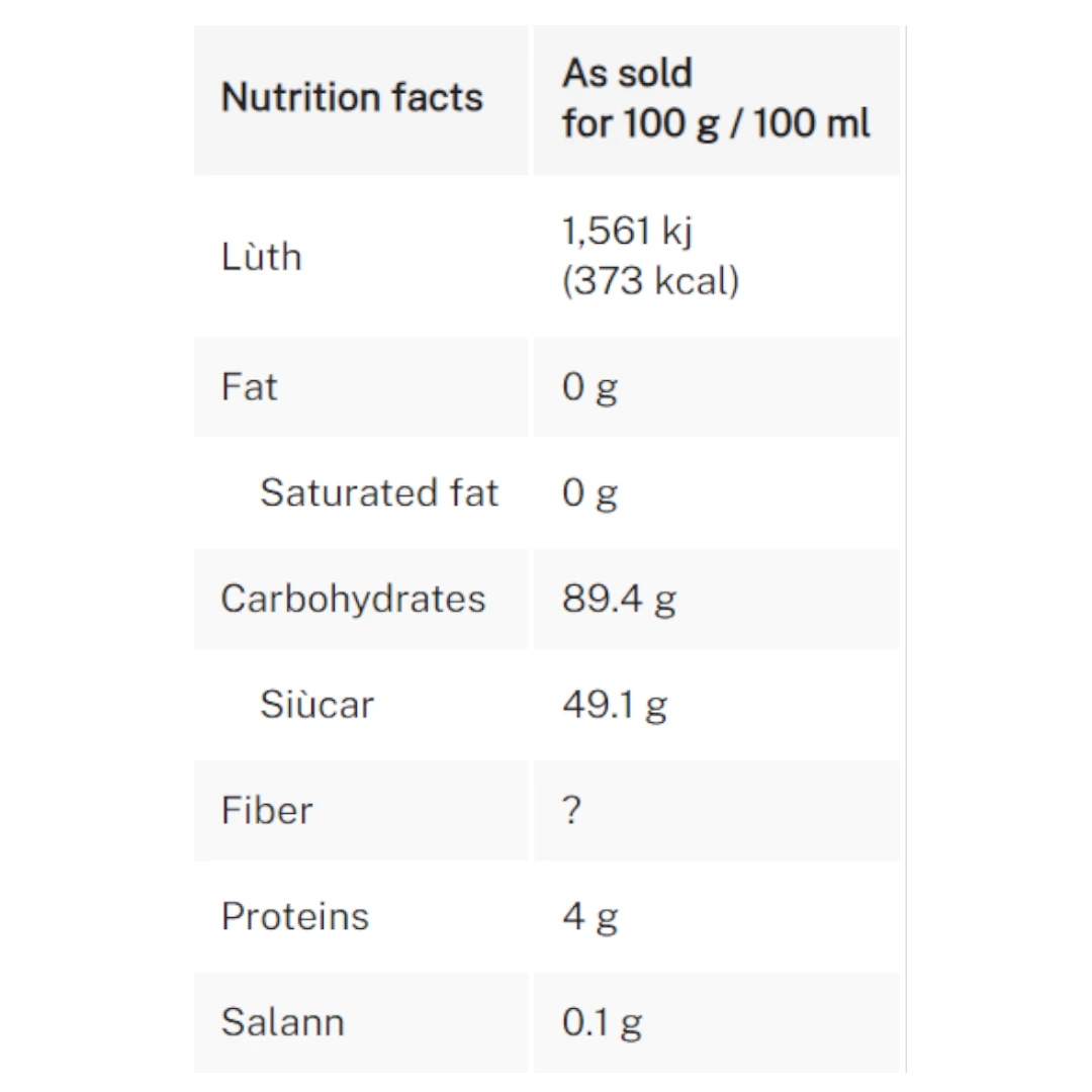 | – of which sugars (g) | 49.1 |