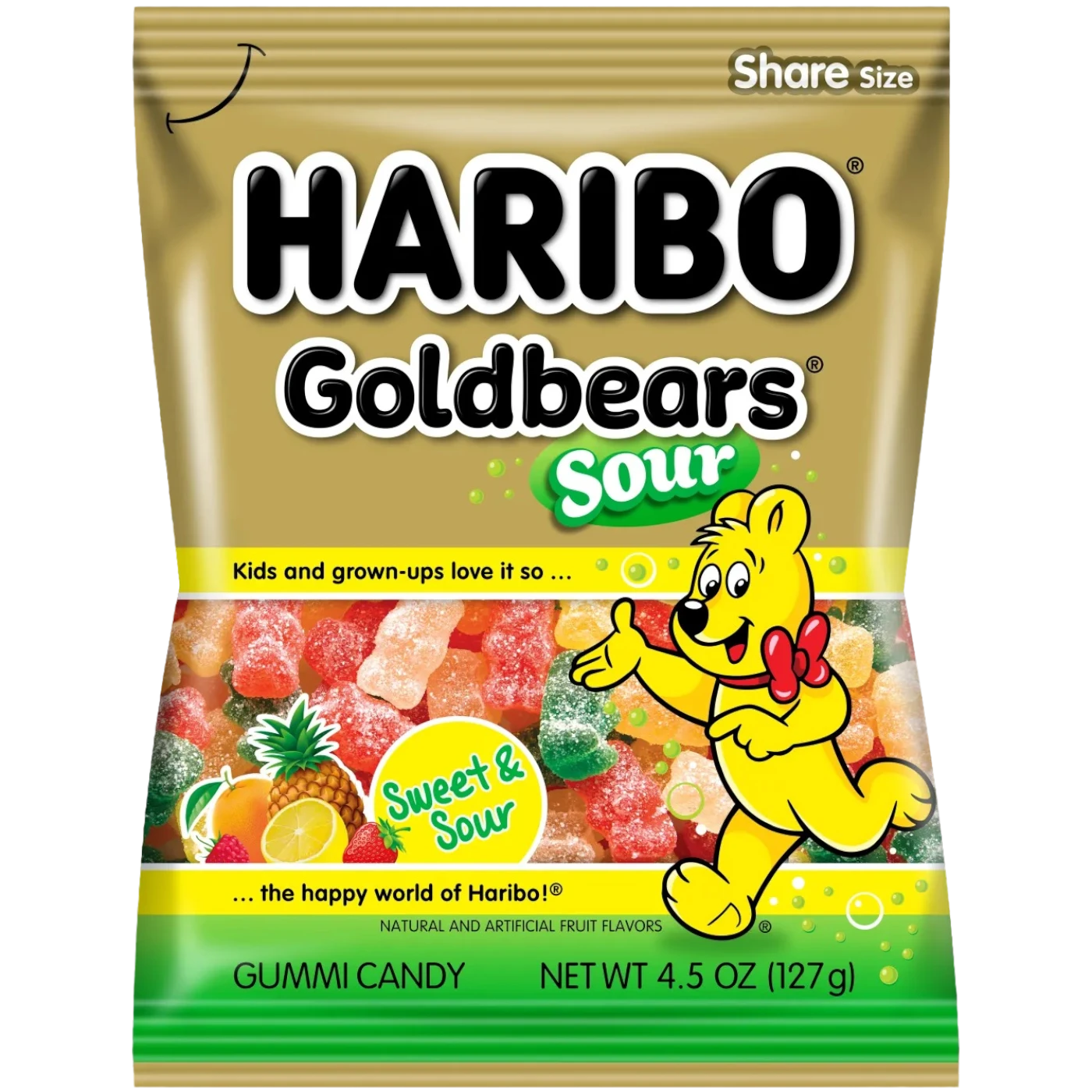 America’s #1 gummi bear has an exciting new jolt of flavor! Every bag of Sour Goldbears includes the classic Lemon, Orange, Pineapple, Raspberry, and Strawberry flavors with a sour and tangy twist!