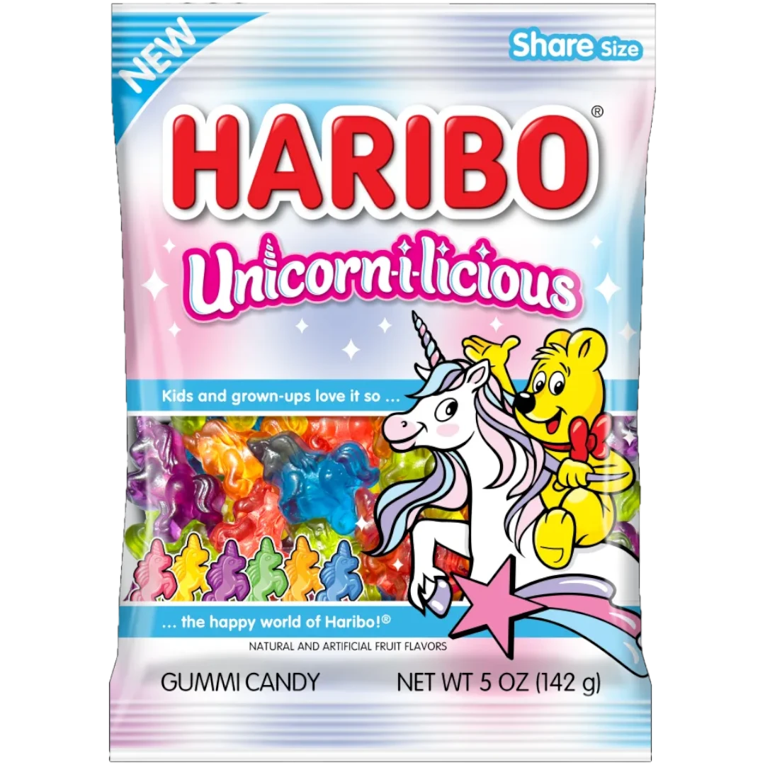 Introducing HARIBO’s latest enchanting creation: Unicorn-i-licious! Immerse yourself in a world of whimsy and flavor with our delightful unicorn-shaped gummies, in a kaleidoscope of colors and six spellbindingly delicious flavors: Apple, Blue Raspberry, Berry Punch, Banana, and for the first time, Cotton Candy and Tangerine. Crafted with care and a sprinkle of magic, Unicorn-i-licious is the perfect treat for unicorn enthusiasts, dreamers, and anyone seeking a taste of pure enchantment.