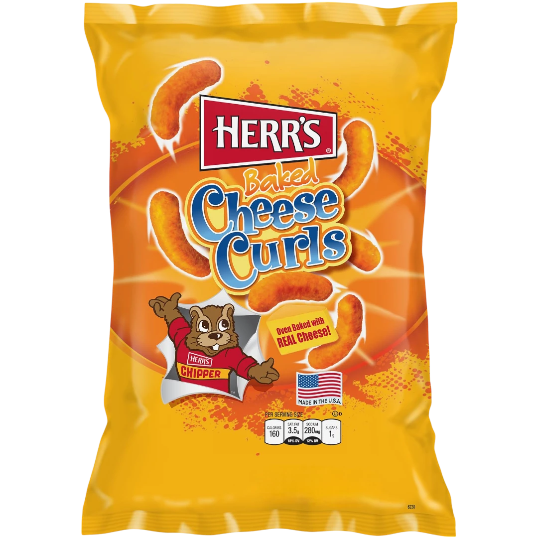 These cheese curls from Herr’s are next level. Made using only real cheese – Herr’s own special blend of natural cheddars – and pure corn meal, they are then baked, not fried, so they’re light and fluffy.