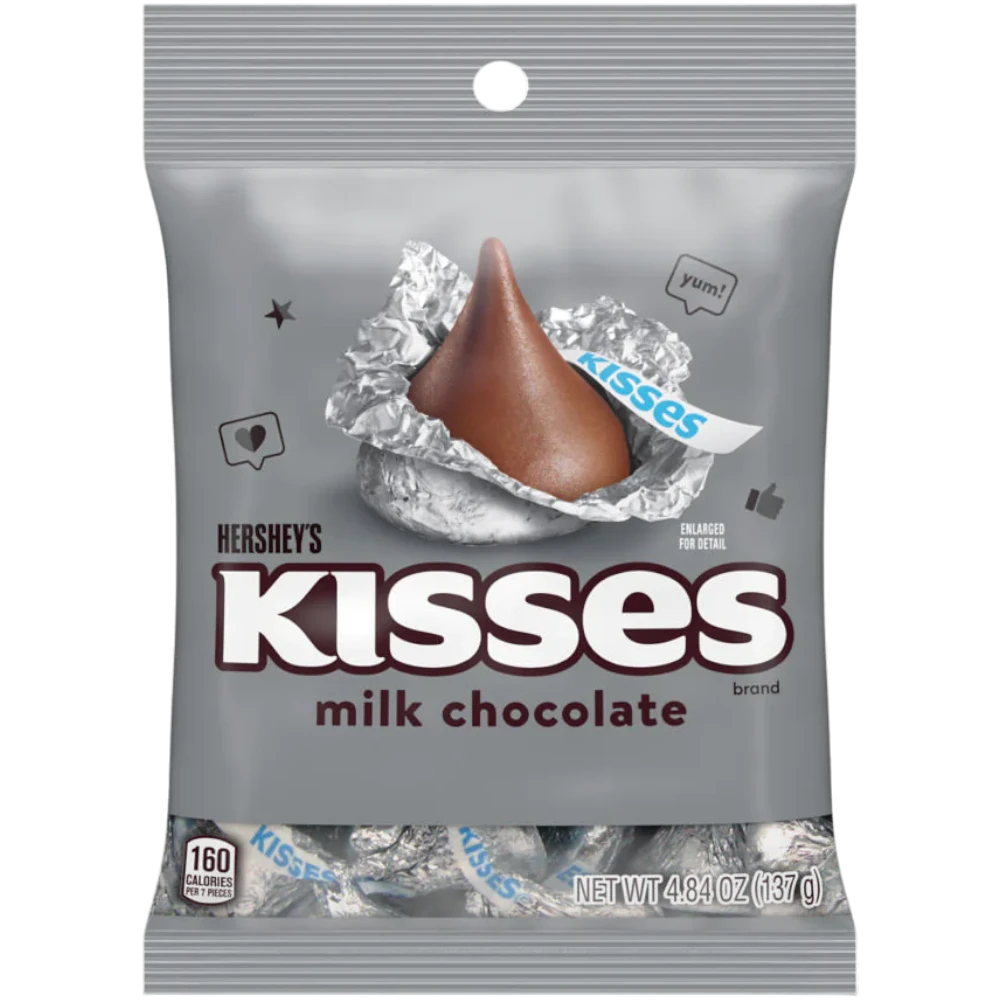 Made with classic Hershey’s milk chocolate, these flat-bottomed drops come in a distinctive, perfectly bite-sized shape, with plenty to share in this bag. Sometimes a kiss says it all.