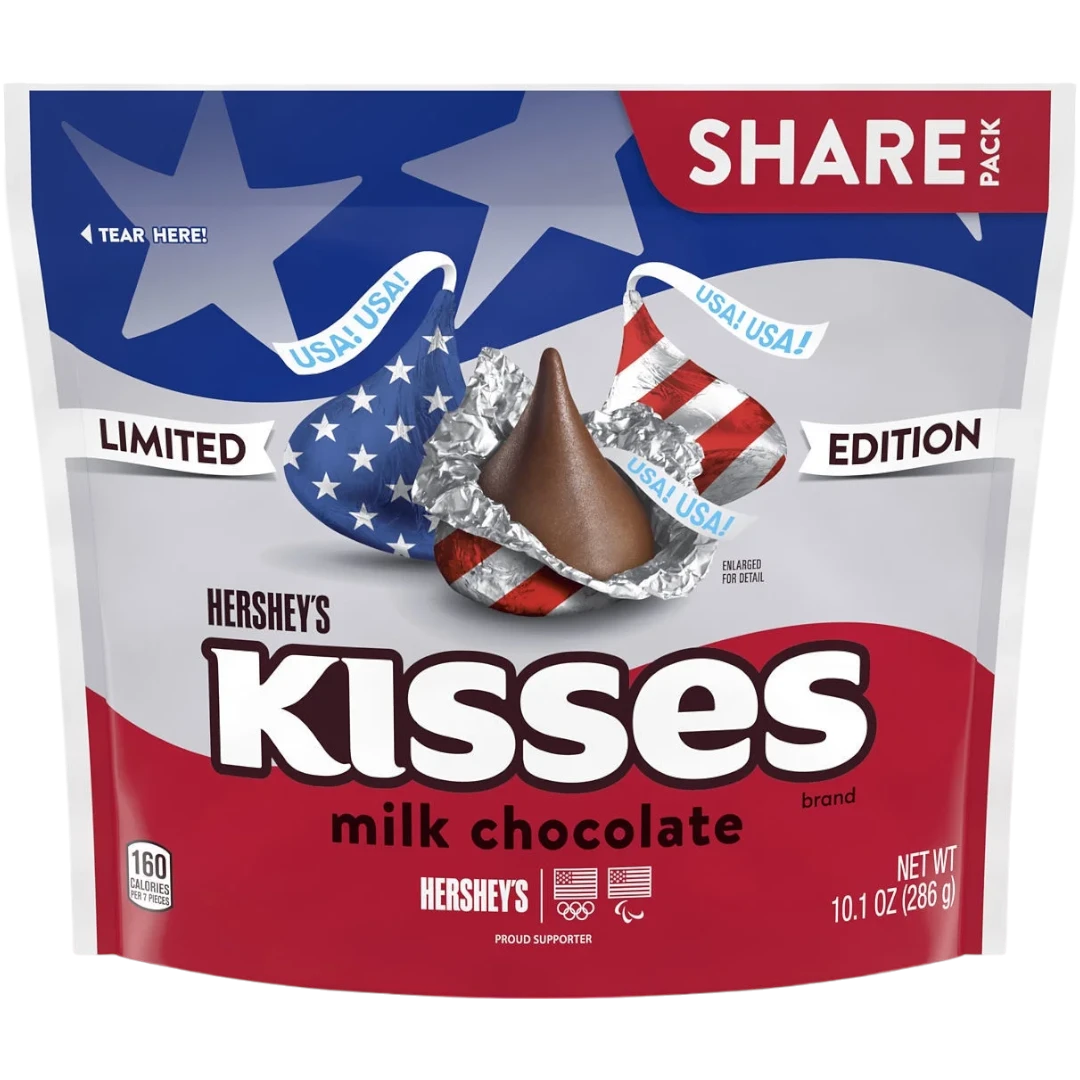 Hershey’s classic creamy milk chocolate Kisses wrapped in patriotic USA packaging!