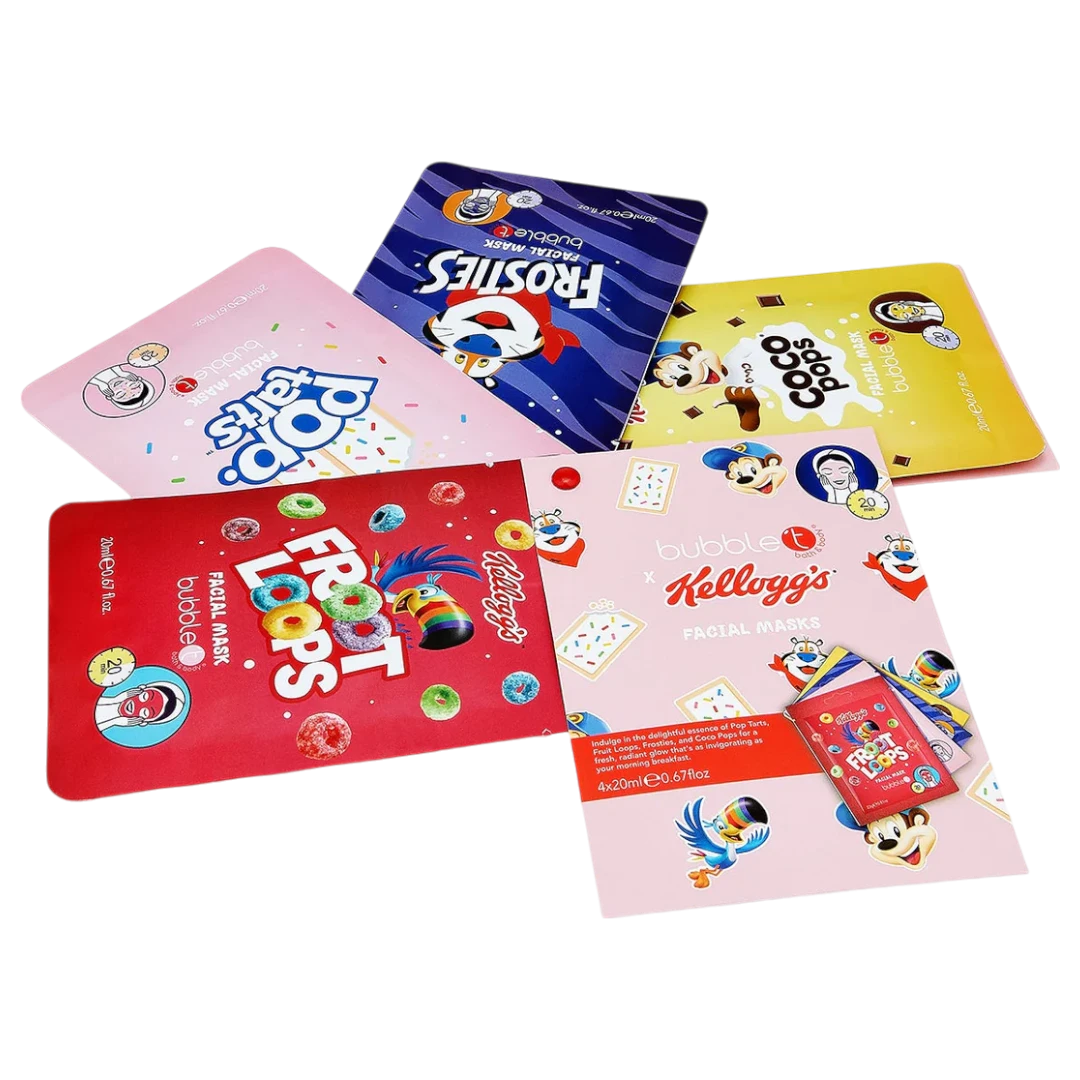 Nourish your skin with a touch of nostalgia with this Kellogg’s Sheet Mask Gift Set. This unique collection features sheet masks inspired by your favorite Kellogg’s cereals, such as Frosties, Froot Loops, Pop Tarts and Coco Pops.