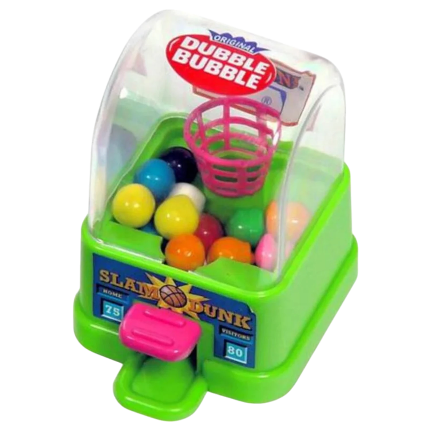 Shoot like Lebron with the Slam Dunk gumball dispenser! Simply shoot the gumball into the basket and blow the biggest bubble you can!