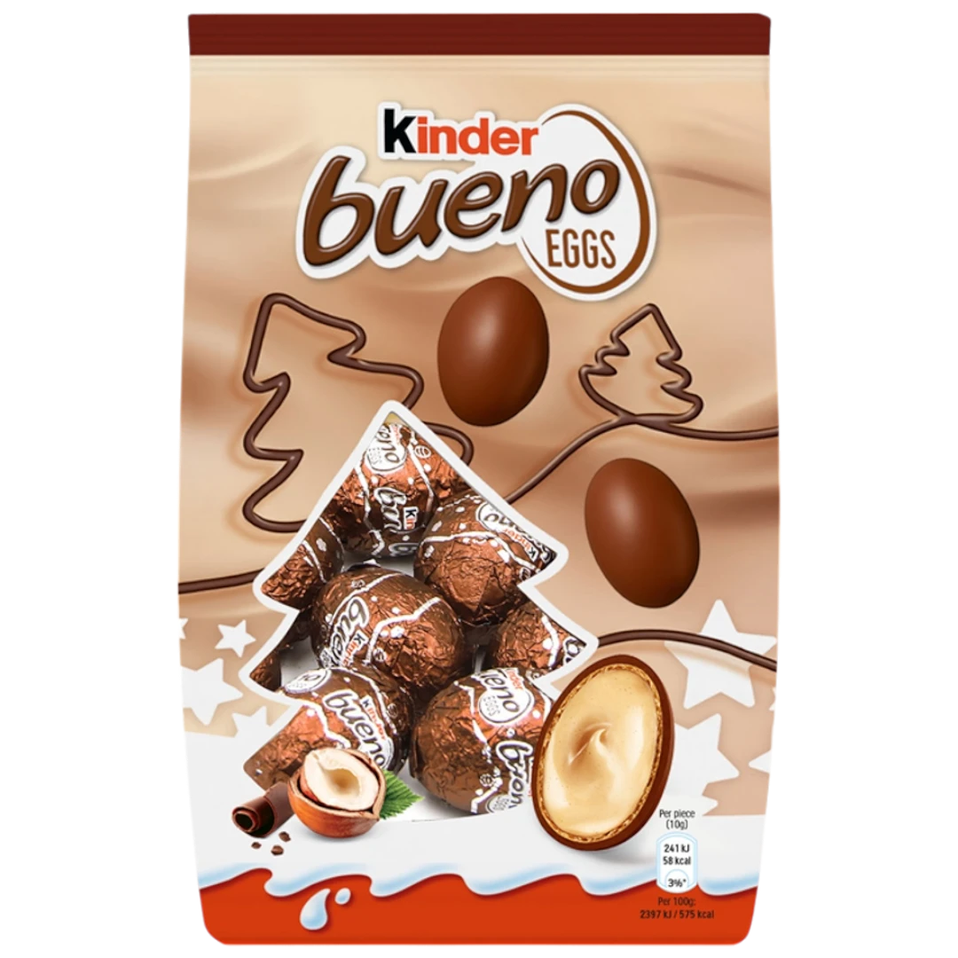 Attention to all Kinder Bueno lovers, these are the perfect festive treat for you! Kinder Bueno in egg form with the same delicious fine milk chocolate covered wafer with a creamy hazelnut filling, perfect for sharing or keep for yourself! If you’re feeling generous, they make a great stocking filler or a small gift for a loved one.