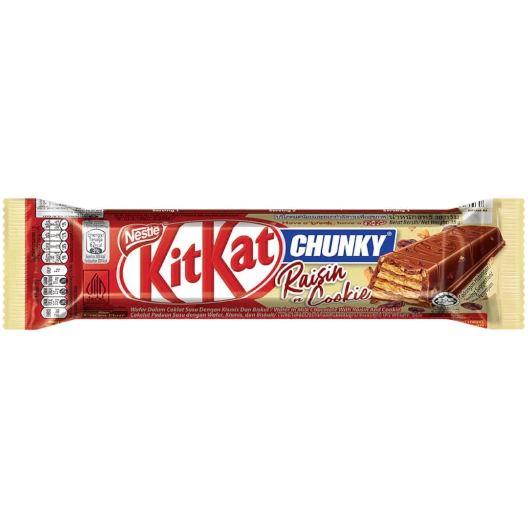 This Malaysian twist on the classic KitKat Chunky brings an irresistible combination of crisp, buttery cookies and plump, juicy raisins!