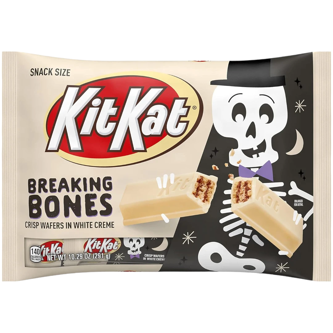 Make trick-or-treaters scream with delight this Halloween with Kit Kat’s Breaking Bones wafer bars. Each crisp wafer in white creme is decorated with a skeleton themed wrapper. These Kit Kats are sure to thrill all the candy lovers this Halloween. Grab a bag to fill up a candy bowl or hand out to trick-or-treaters.