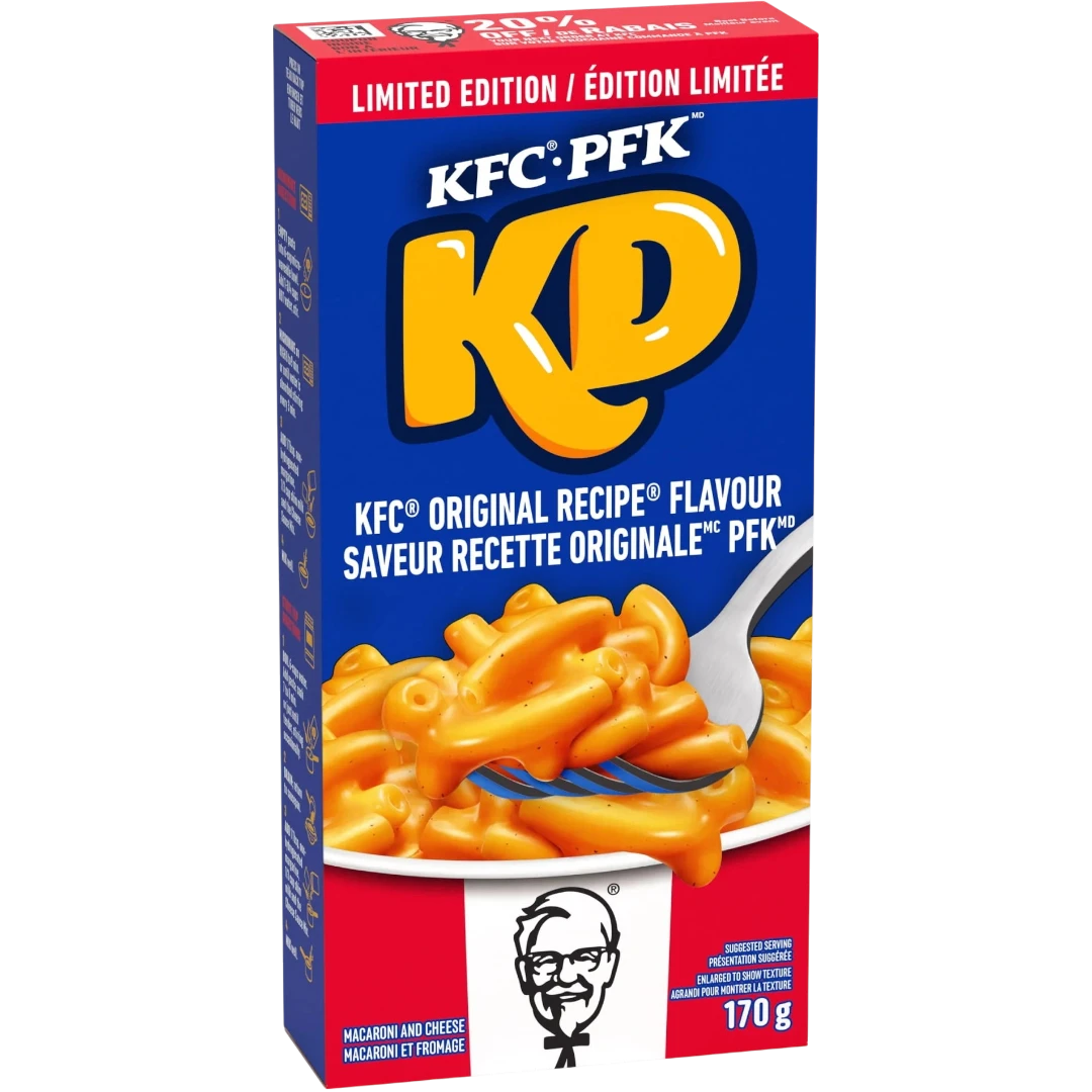 Enjoy two beloved originals like you’ve never had them before. Iconic meets legendary in our collision between two of Canada’s favourite flavours. KD KFC Original Recipe Flavour Macaroni and Cheese combines the Colonel’s Original Recipe 11 herbs and spices with the iconic KD cheesy taste in this quick and easy-to-make box of mac ‘n cheese that’s ready in only 7-8 minutes!
