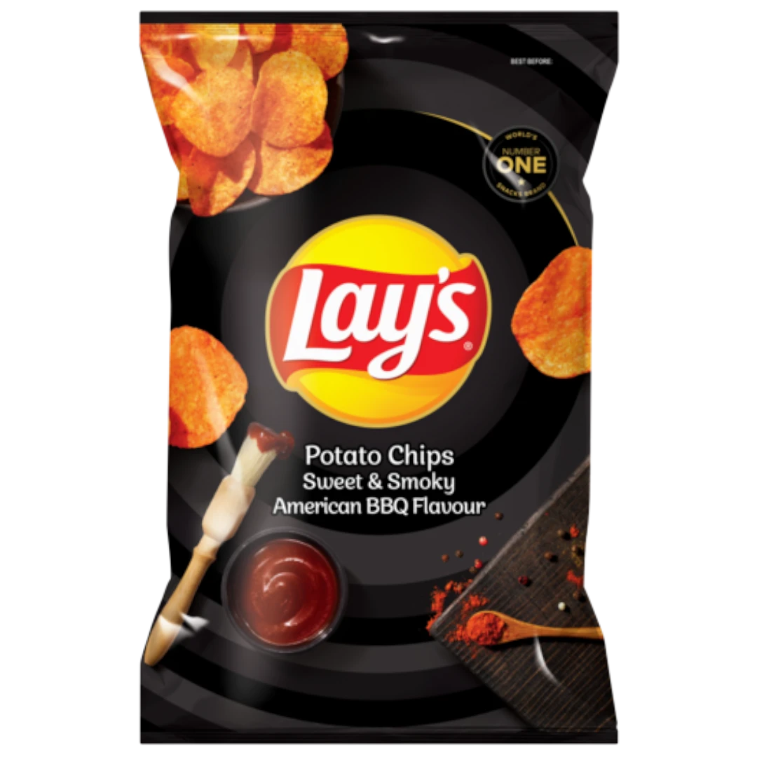 Savour the moment with these sweet and smoky American BBQ-flavoured potato chips. Crispy and flavourful, these chips are just right to be enjoyed as is, but are also delicious with a dipping sauce.