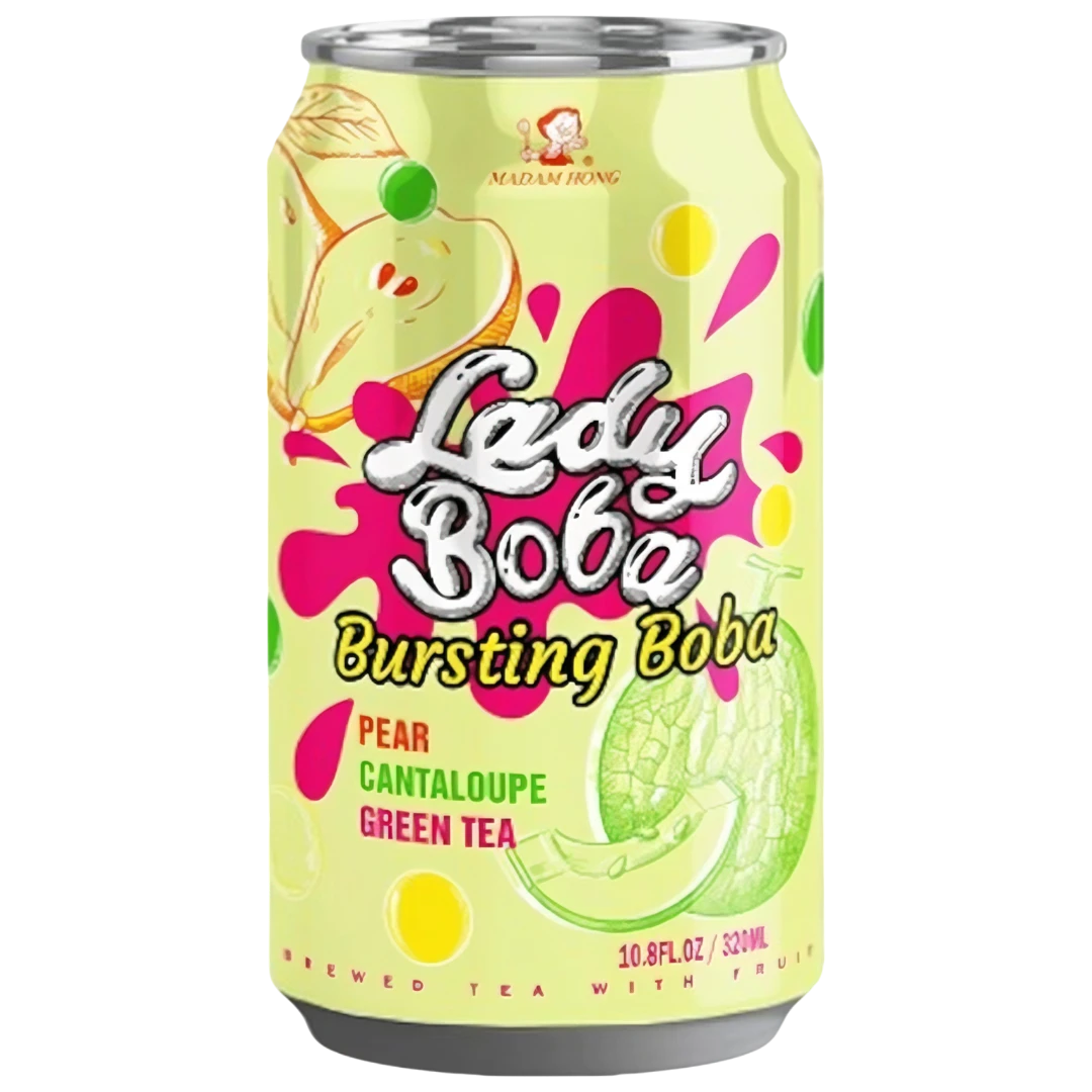Introducing a delicious green tea drink from Madam Hong, Pear and Melon flavoured with bursting boba balls.