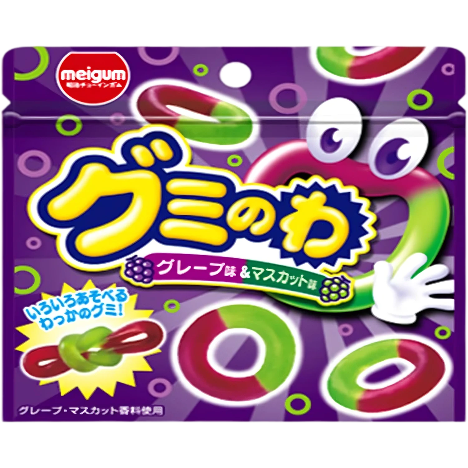 Embark on a Japanese candy adventure with these delicious gummy rings from Meiji! Each ring is packed with the flavours of two Japanese grapes that are famous for their superior flavours – Kyoho (purple) and Muscat (green)! Their super stretchy texture and ring shape lets you loop them in and out of one another – who said you can’t play with your food?!