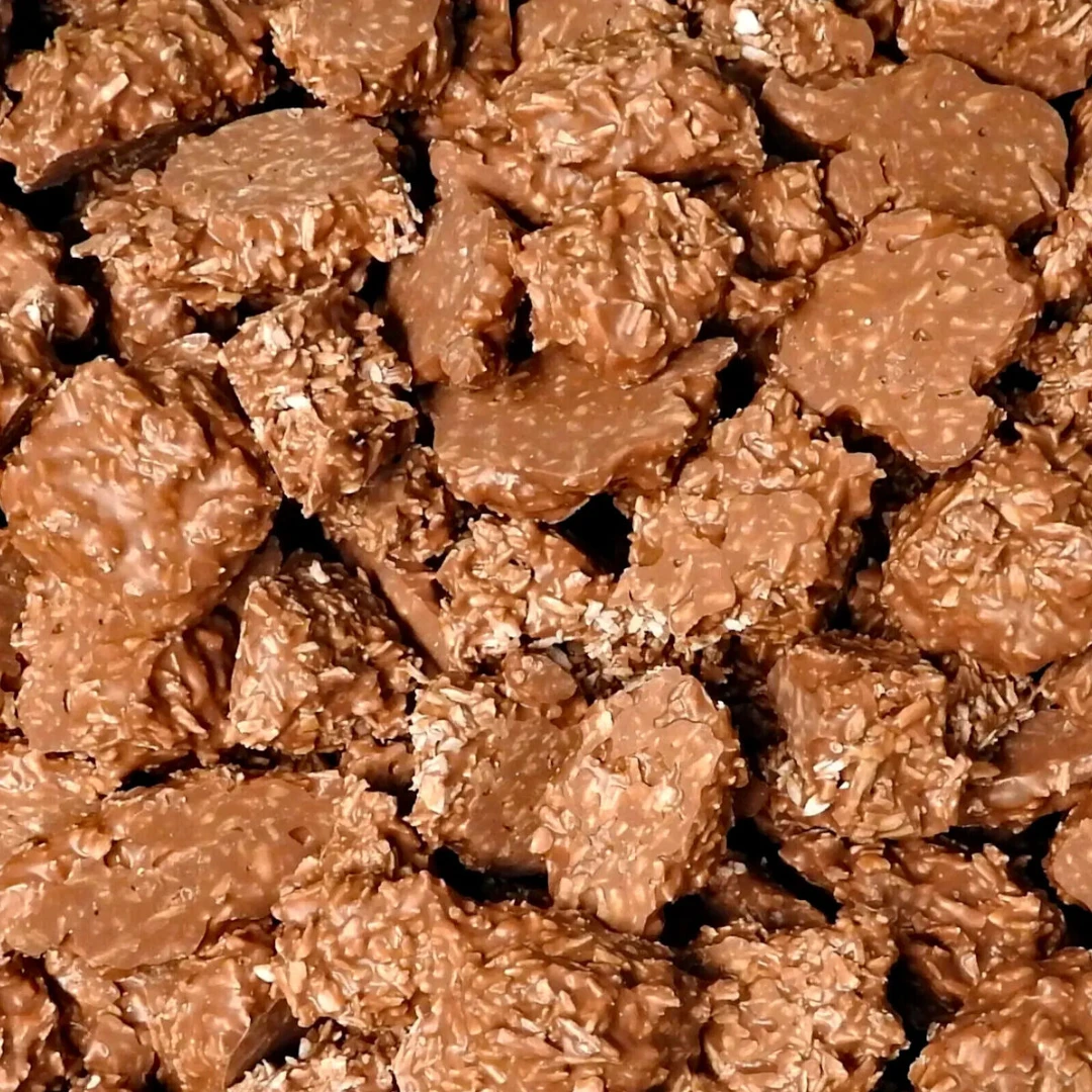 Chunky clusters of desiccated coconut smothered with a luxury milk chocolate.