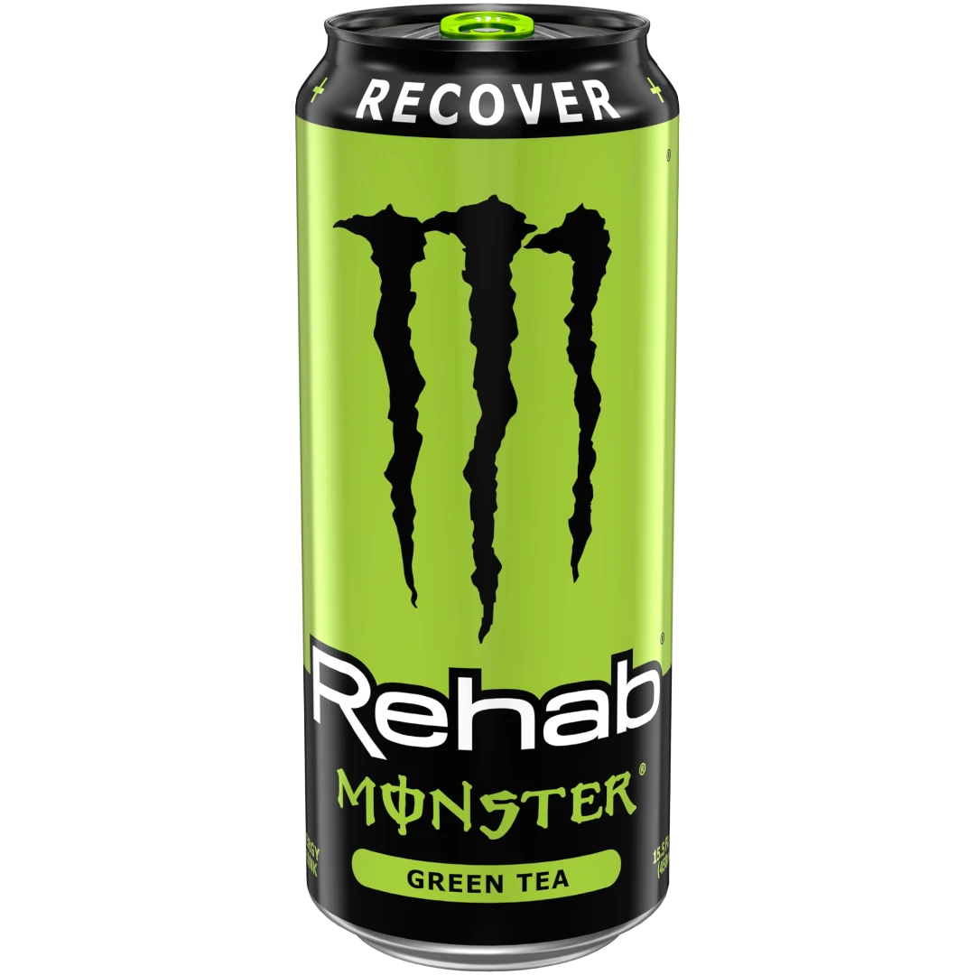 Monster have put their unique spin on Green Tea! This Green Tea is packed with electrolytes, vitamins, and botanicals that deliver on advanced hydration helping you reduce fatigue and increase concentration. Rehab Monster Green Tea is non-carbonated, with only 25 calories per can.
