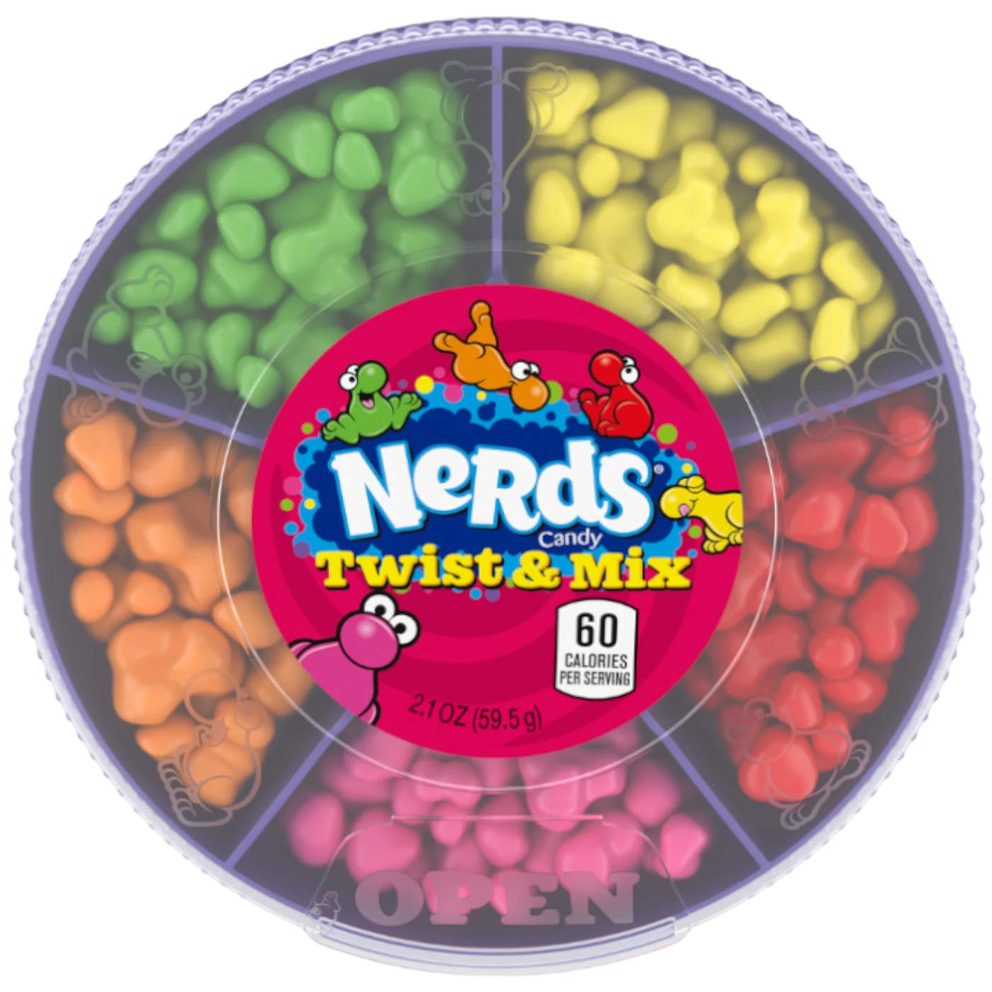NEW Nerds Twist & Mix has a container with five separate sections, each filled with a different flavour.