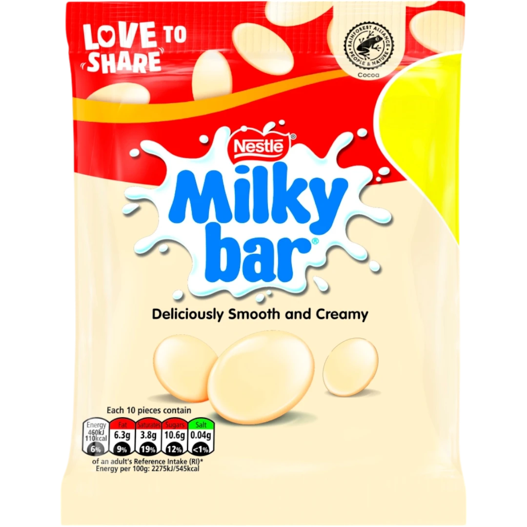 Good news for all of you Buttons fans – Milkybar® white chocolate summarys are now a whole lot BIGGER! Enjoy the great taste of Milkybar® but with a bigger bite. Milkybar® Giant Buttons have great tasting creamy smooth white chocolate, enjoy milky deliciousness in a bar with no artificial colours, flavours or preservatives. Milkybar® giant white chocolate summarys are perfect to share with all of the family.