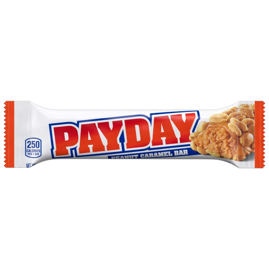 Indulge in the irresistible combo of sweet and salty with Payday Bars! Featuring a soft nougat centre wrapped in rich, chewy caramel and generously coated with crunchy, salty peanuts, this candy bar is a treat you won’t want to miss. It’s the perfect snack for satisfying your cravings—grab one today and go nuts!