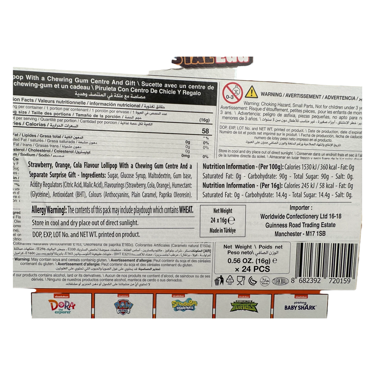 Gotta get your hands on this Nickelodeon Surprise Crystal Egg! At 16g of pure surprise, it’s like a surprise party in your pocket – with an assortment of designs that you’ll love! Now that’s egg-cellent! Inside you’ll find a sweet lollipop with a gum centre and a surprise toy!
