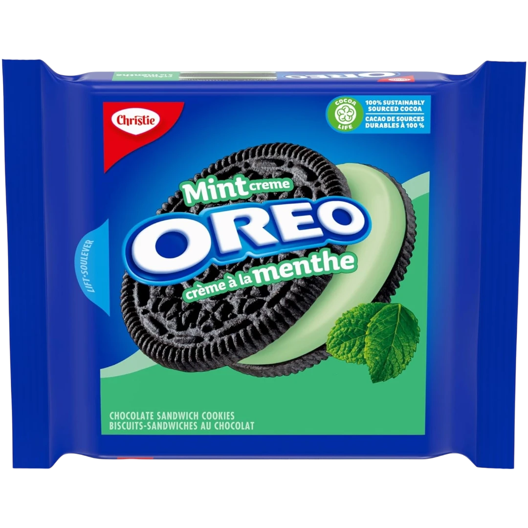 | sugars (sugar, glucose-fructose), WHEAT flour, modified palm, oil, vegetable oil, cocoa, WHEAT and/or corn starch, salt, SOY lecithin (E322), E500, E503(ii), pppermint oil, unsweetened chocolate, artificial flavour, E102, E133 |