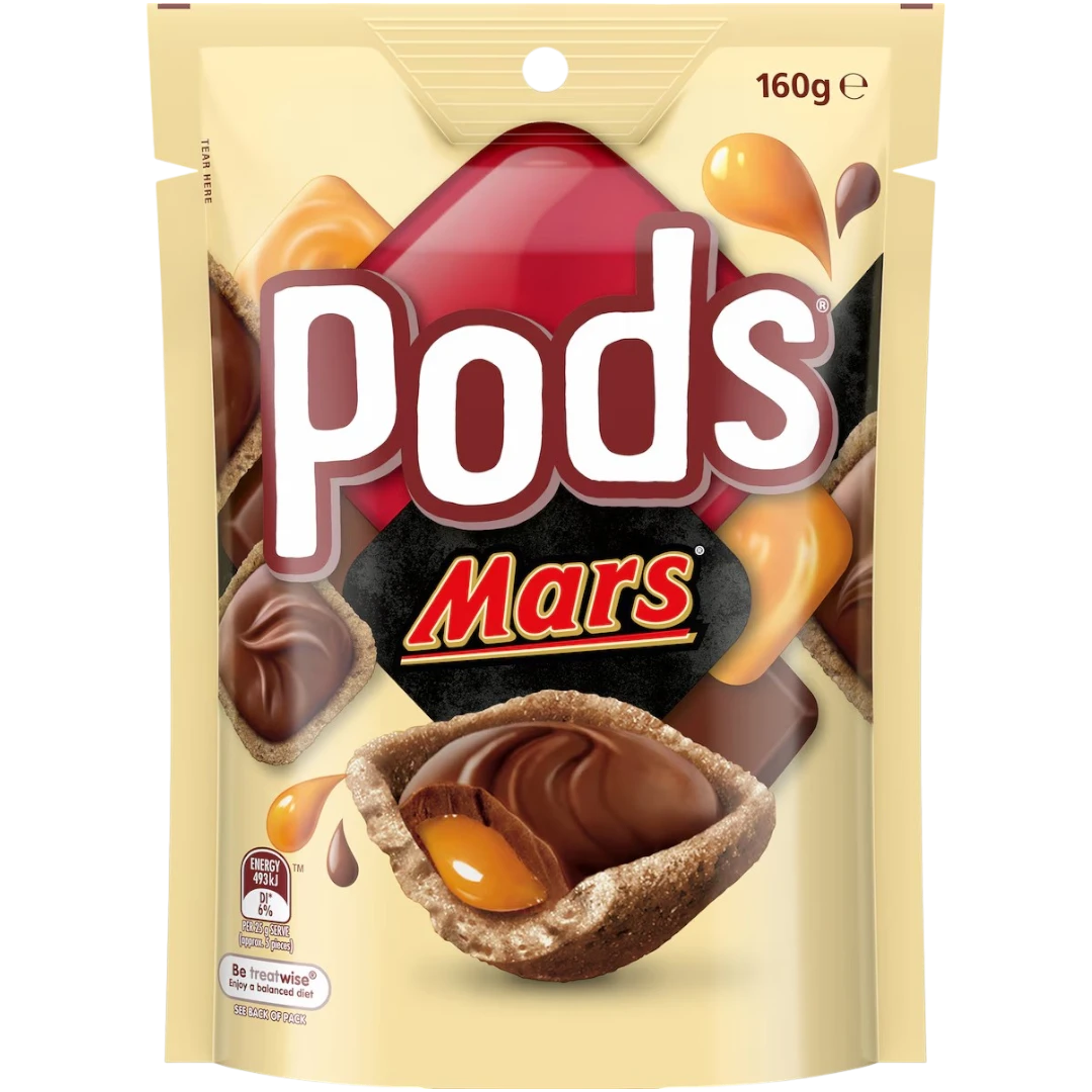 With a crispy baked wafer that’s ingeniously shaped like a shell, a soft MARS filling and delicious milk chocolate topping, PODS MARS are the perfect treat or chocolate snack. Pop one in your mouth and enjoy the crunchiness of the wafer, the creaminess of the milk chocolate and the layer of delectable gooey caramel. PODS MARS are perfect to be enjoyed any time of the day. Make PODS a delicious movie or party chocolate snack, pair with a coffee or tea, or share them with your friends and collegues!